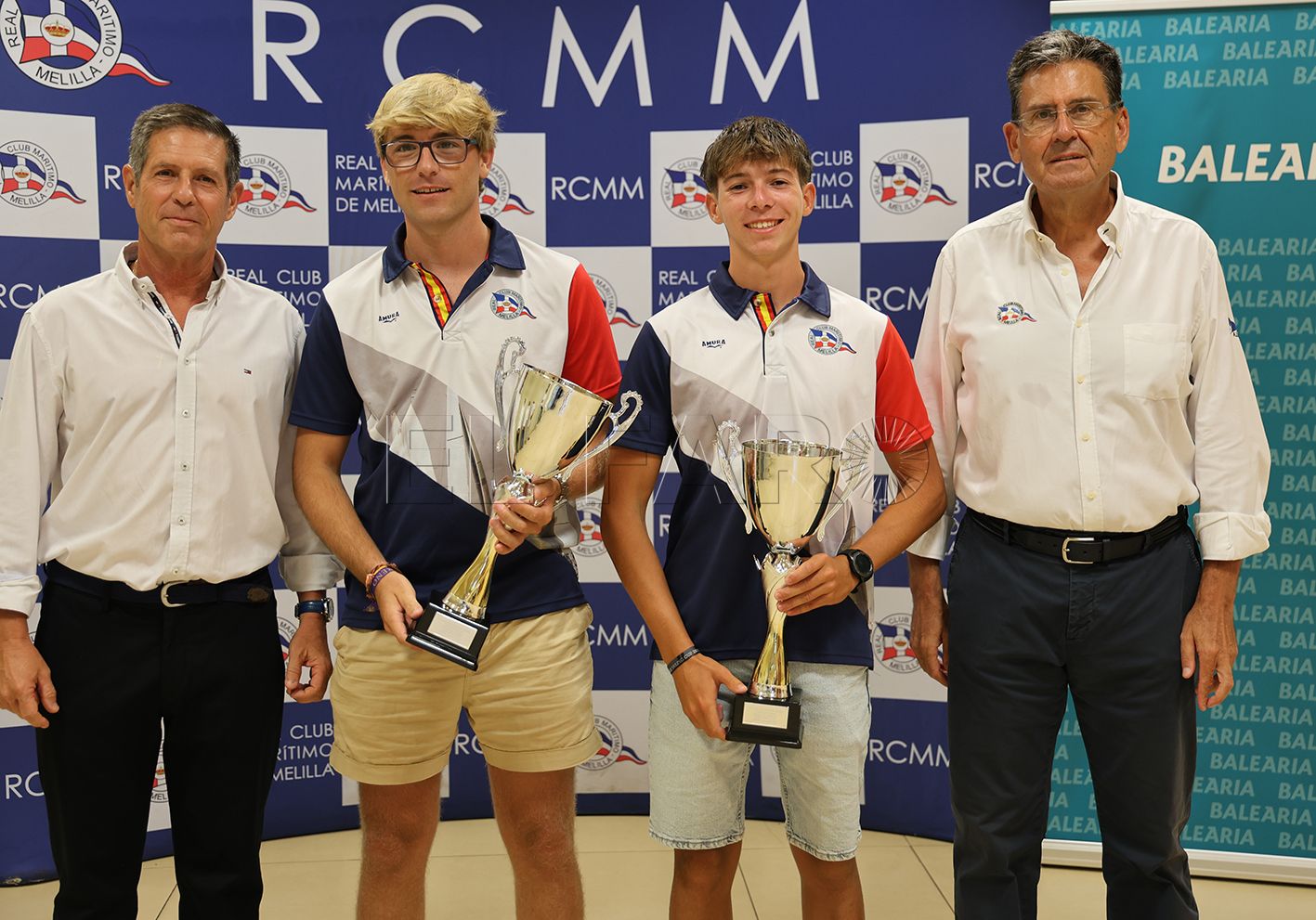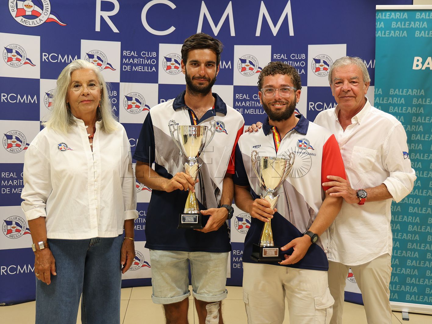 Miguel Dueñas y Juanmi Lucas recibían el galardón como campeones de esta quinta edición del Trofeo ‘Club Marítimo – Melilla Ciudad del Deporte’, mostrando un gran nivel durante las seis mangas de la competición.