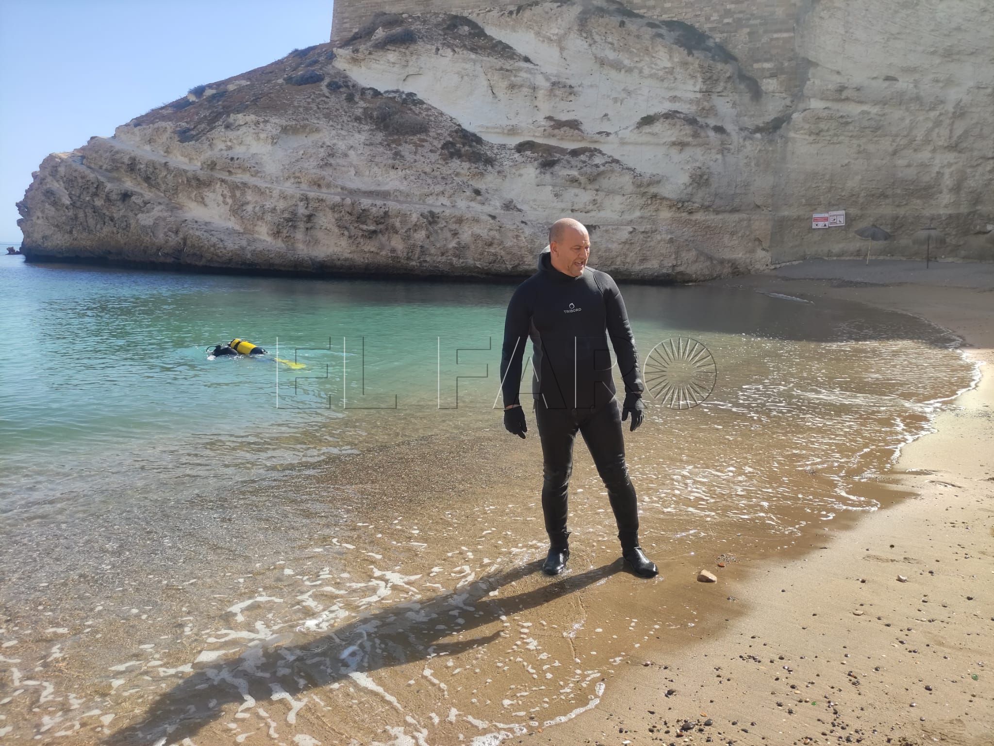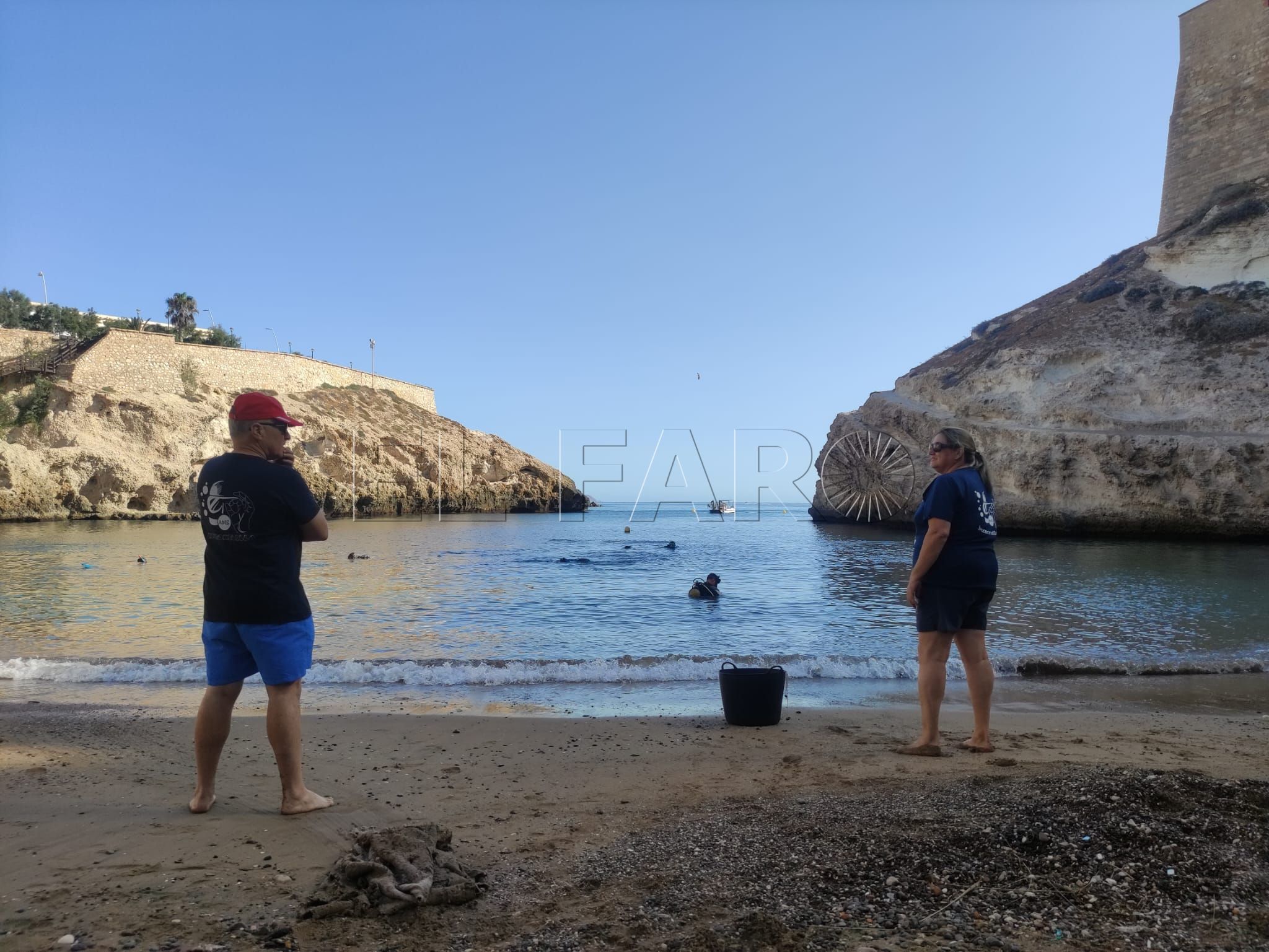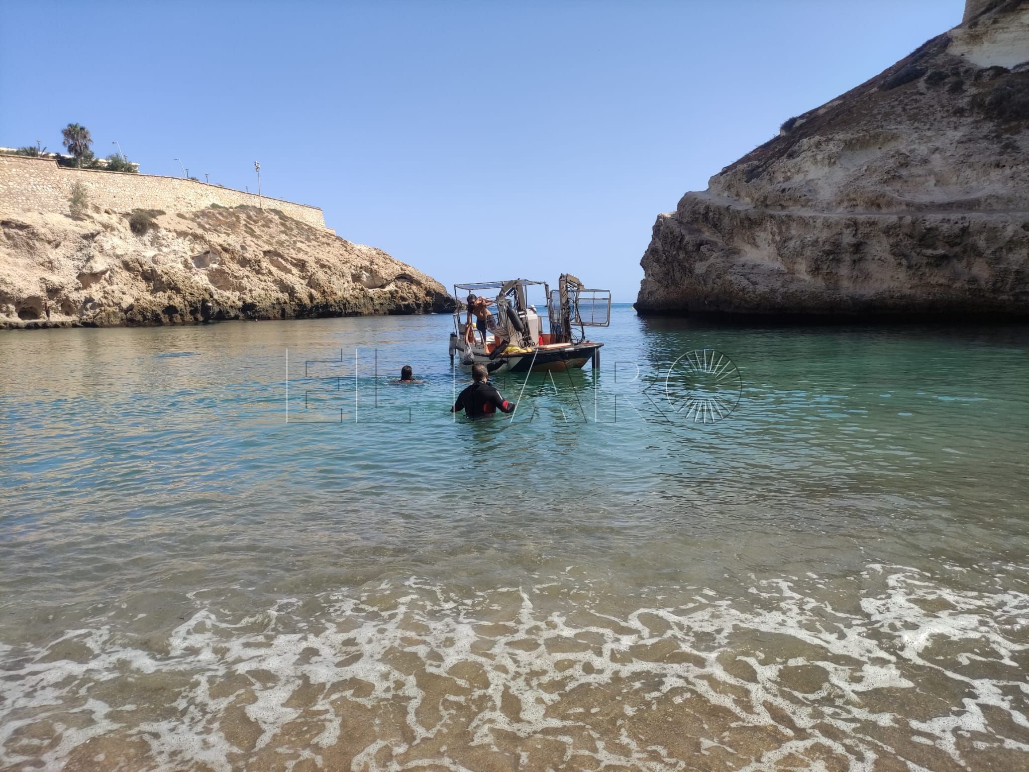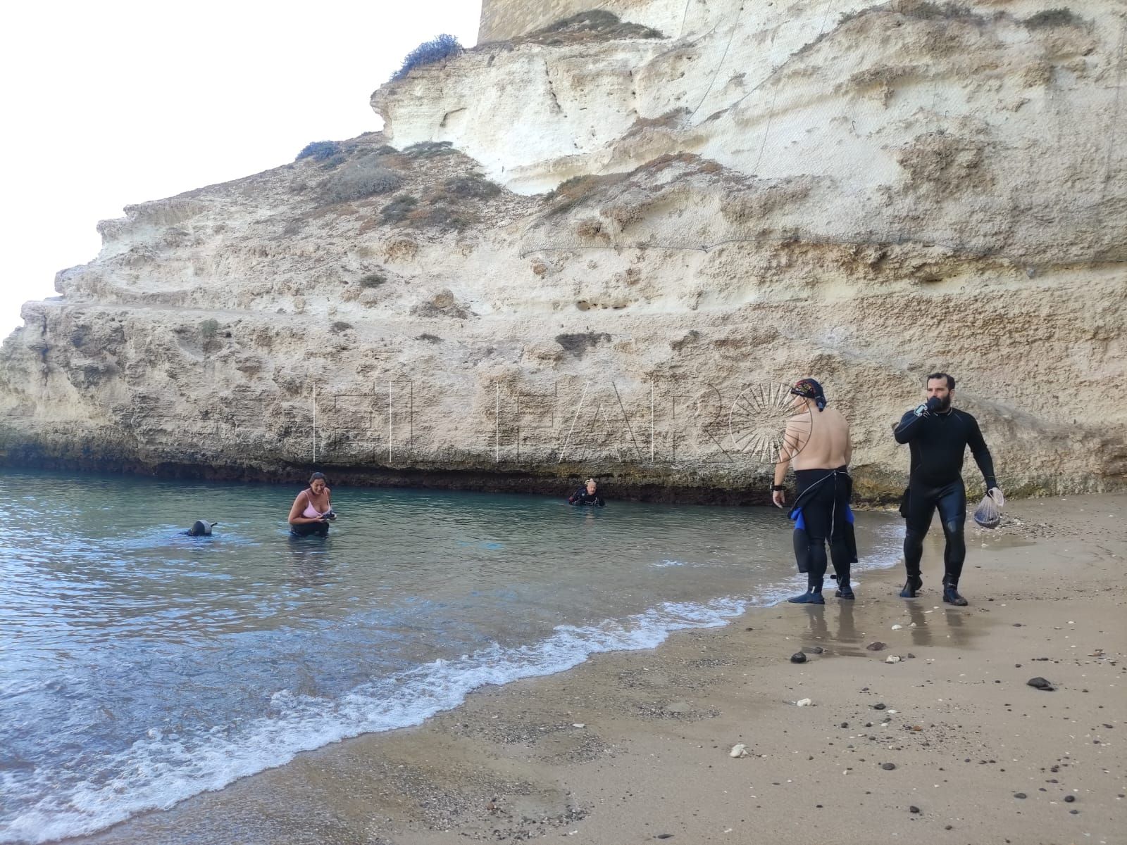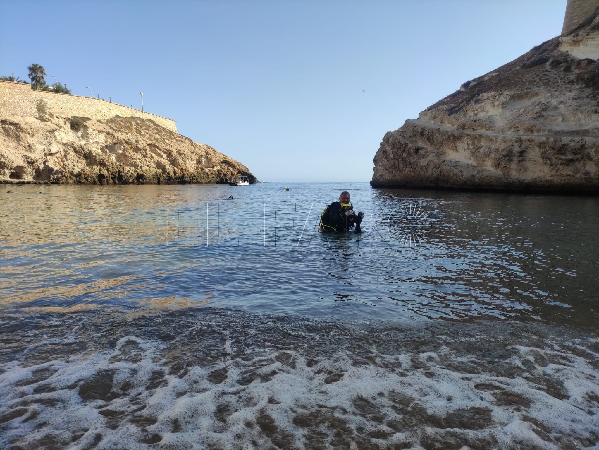 Hora y media de diferencia con el resto de días de acceso al baño desde el Foso de Santiago y algo más de dos horas de trabajo de inmersión han facilitado que el fondo marino pueda hoy estar un poco más limpio. Este trastoque horario, que a algunos melillenses les ha pillado por sorpresa, ha permitido el saneamiento extra de la pequeña cala en una iniciativa propiciada por la Asociación Buceomelilla y la consejería de Deporte, con el apoyo de Medio Ambiente.