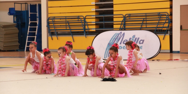 La escuela de gimnasia rítmica de la Federación Melillense de Gimnasia puso en escena las principales coreografías de este gran musical con una profesionalidad, de manos de tan jóvenes deportistas, que arrancaron numerosos aplausos en cada una de sus simpáticas actuaciones, en unas abarrotadas gradas donde no se paró de animar el buen trabajo realizado por cada una de estas jóvenes deportistas de nuestra ciudad que pusieron en liza todo lo entrenado durante estos meses atrás.