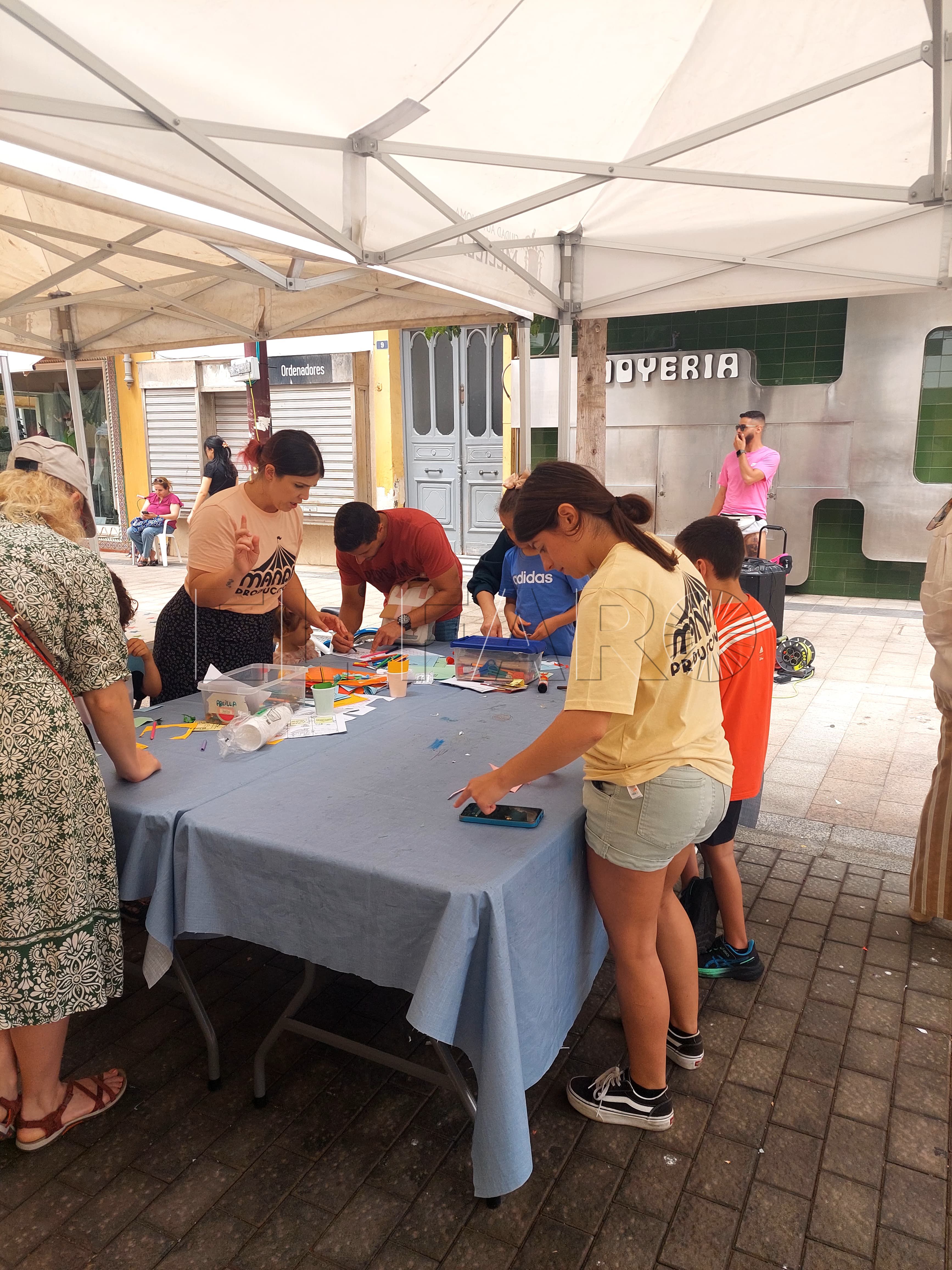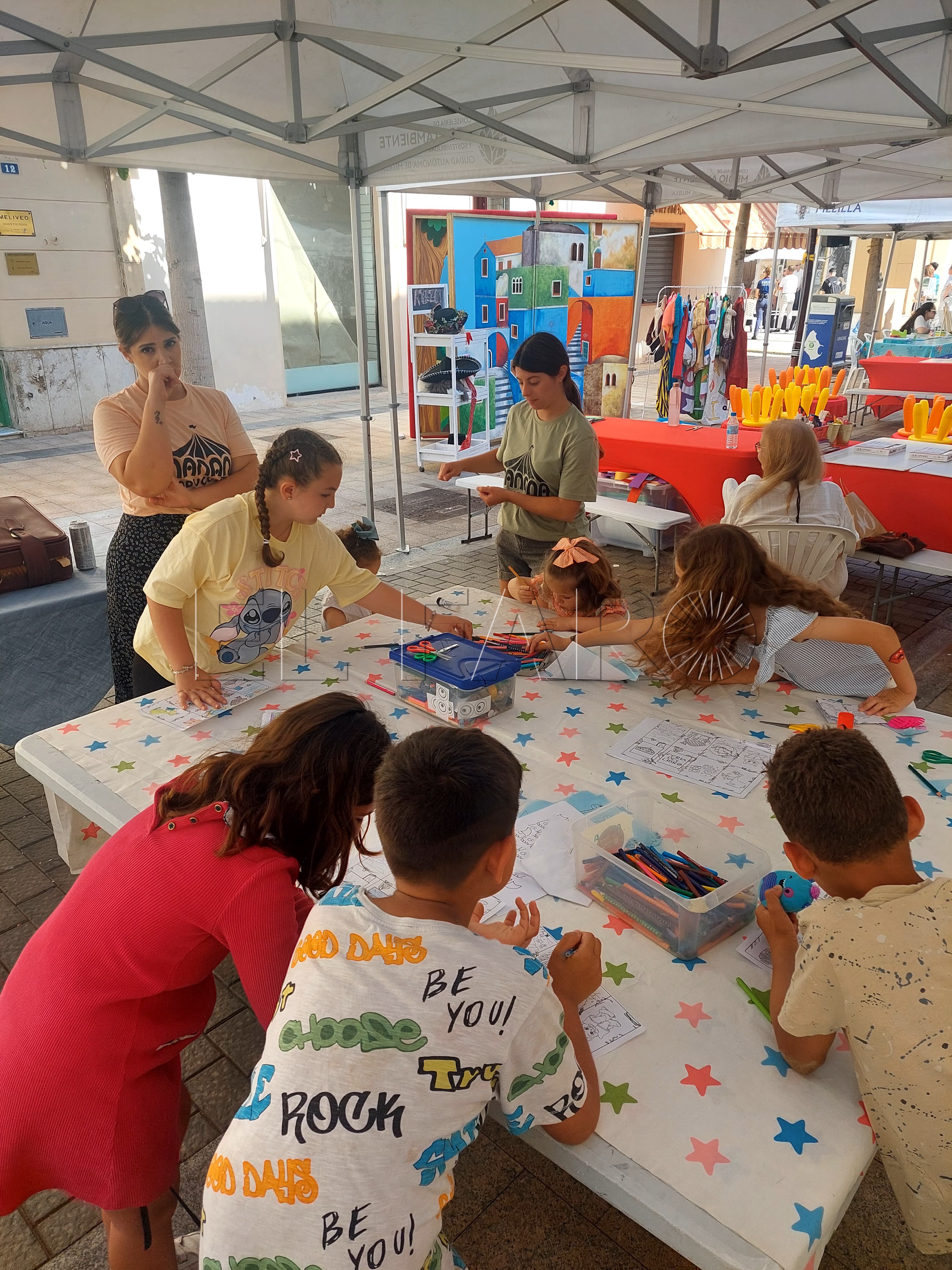 En la Calle General Pareja, 'Manana Producciones', una compañía de teatro y animación, presentó un taller diario con manualidades centradas en la temática del libro. Rocío, una de sus responsables, nos detalló la propuesta: "Cada jornada ofrecemos manualidades diferentes. Por ejemplo, hemos hecho marcapáginas temáticos, tarjetas y hasta pequeños libritos para que los niños puedan contar sus propias historias. Este domingo, por ejemplo, estamos haciendo 'La flor del Principito'".