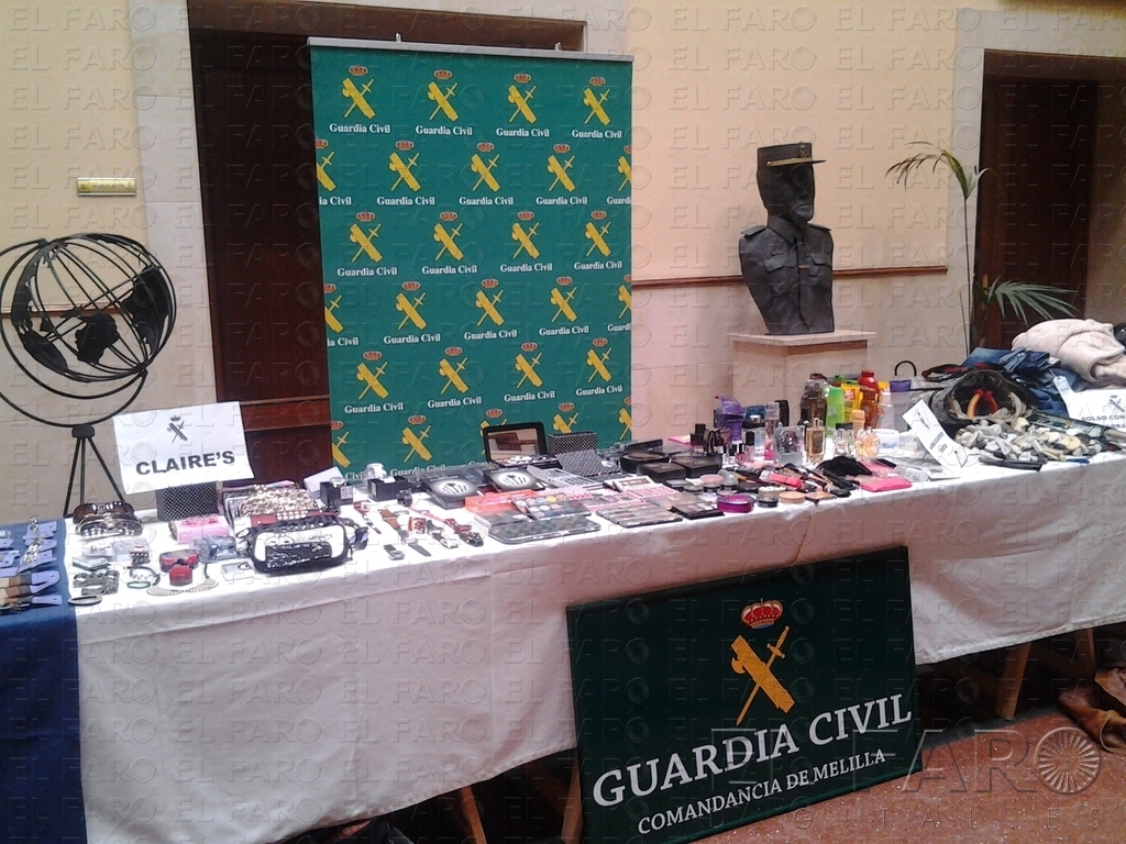 La Comandancia de Melilla ha invitado hoy al delegado del Gobierno, Abdelmalik El Barkani, para comprobar los artículos sustraídos, un total de 650, por valor de 15.000 euros, fruto de más de 200 hurtos. Resultado de la operación se ha detenido a doce personas ya en disposición judicial, en su mayoría inmigrantes del CETI, a donde llevaban el botín para revenderlo a otros inmigrantes. (Más información mañana en El Faro de Melilla)