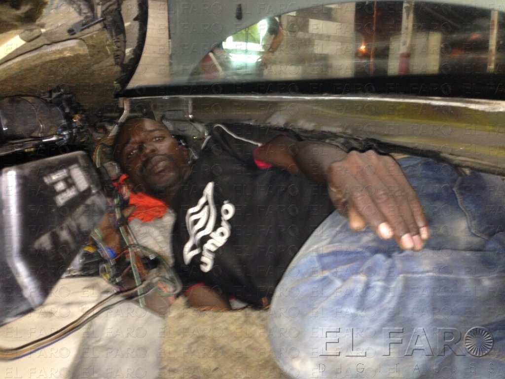 Únicamente levantando el capó los agentes vieron las piernas de una persona que tenía el resto del cuerpo bajo el salpicadero. Una vez se retiró el mismo con ayuda de herramientas, el inmigrante fue ayudado a salir. Tras ser rescatado, los guardias civiles actuantes prosiguieron la inspección del interior del vehículo, detectando ciertas anomalías en el asiento trasero. Bajo la moqueta hallaron una chapa metálica soldada al chasis, que fue retirada con una ‘pata de cabra’ y que ocultaba un doble fondo con otro inmigrante dentro.