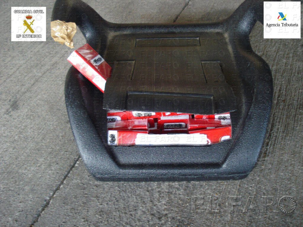 También se localiza en los equipajes de mano que portan los viajeros tanto en vía marítima como aérea, en dobles fondos de los vehículos que embarcan hacia la península, así como en los registros selectivos realizados en los puntos habilitados de Beni-Enzar y Farhana.