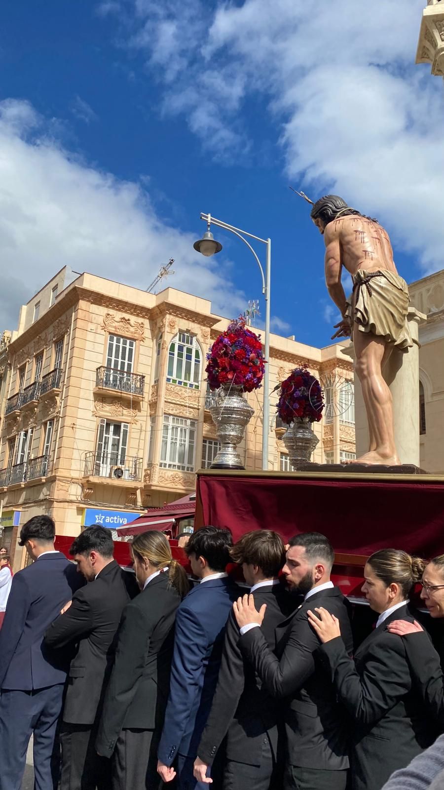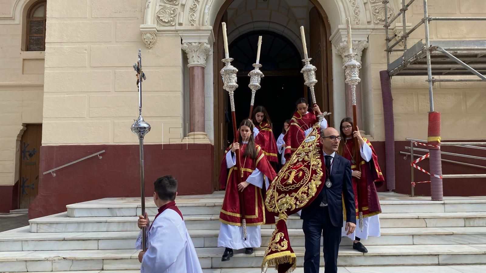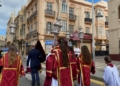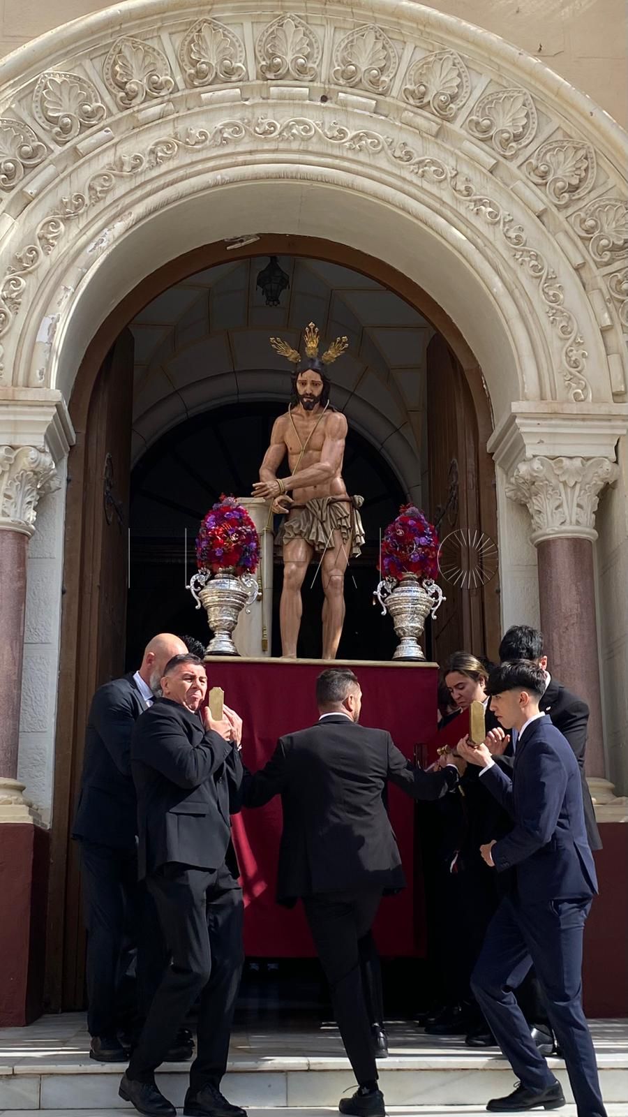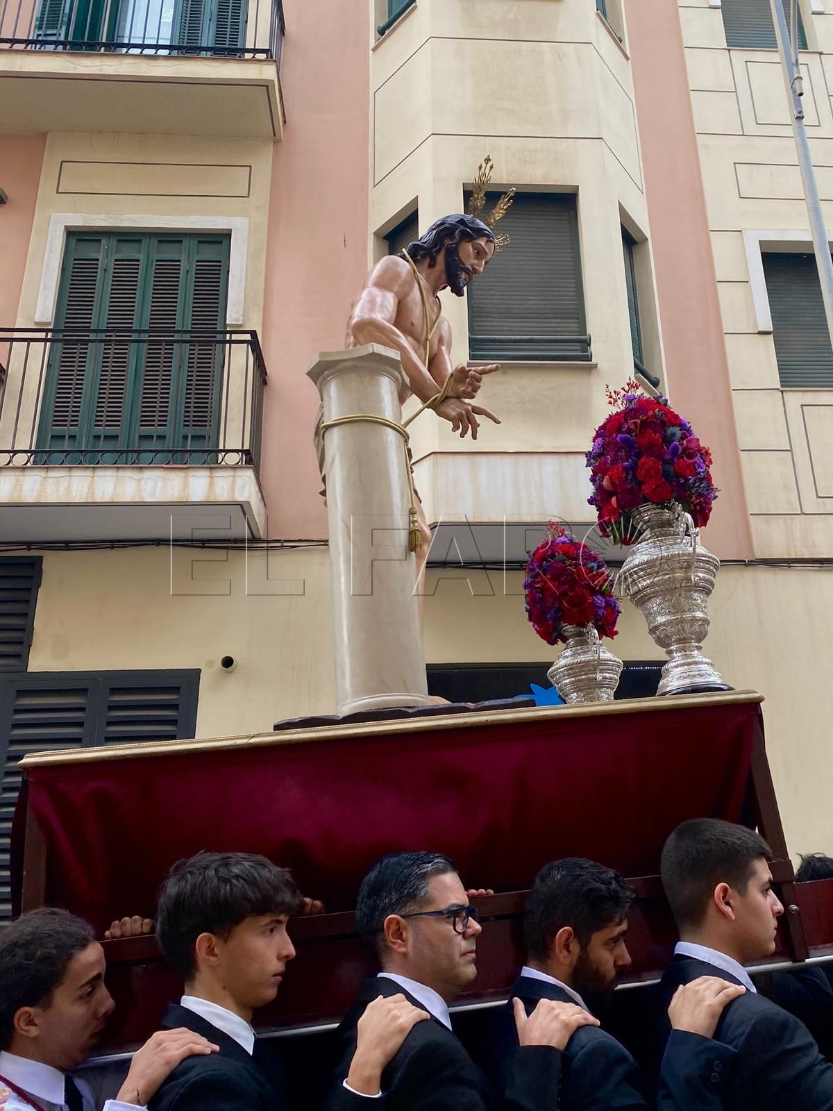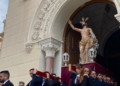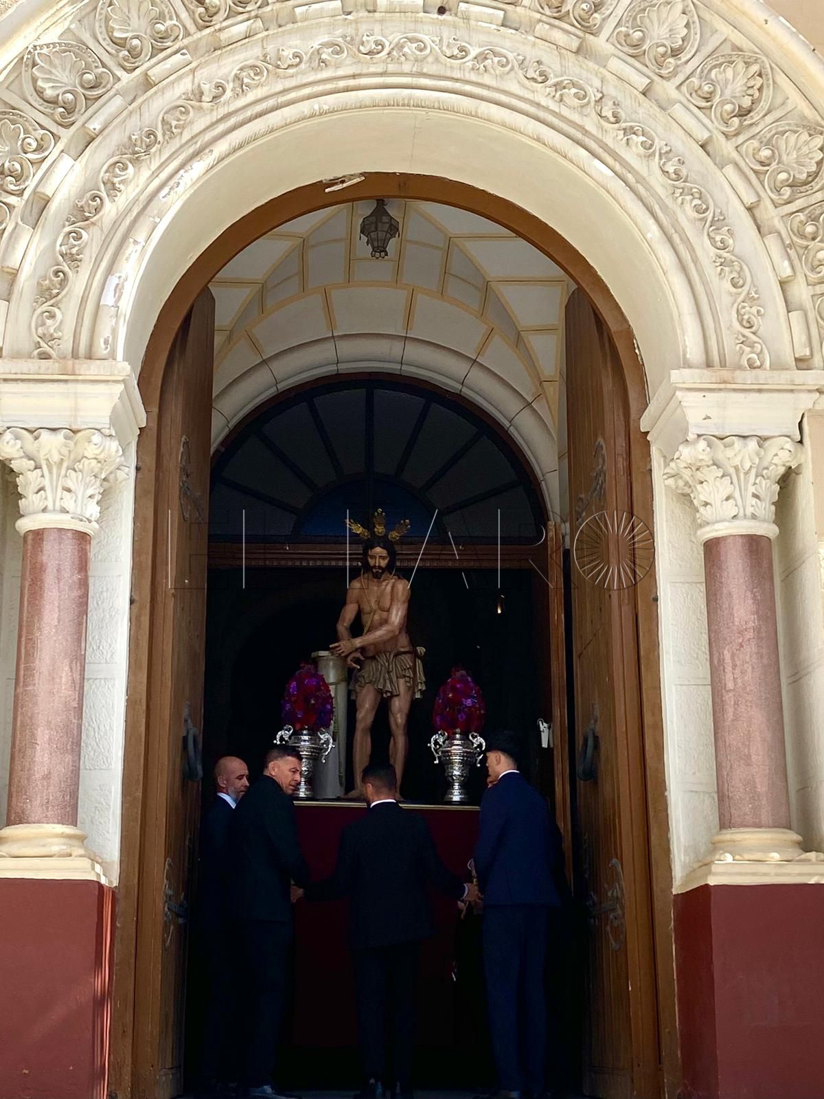 La iglesia del Sagrado Corazón ha sido el punto de encuentro de los hermanos de la Cofradía de la Flagelación con motivo del traslado de sus titulares hasta la Casa Hermandad, situada en el barrio ‘Batería Jota’.