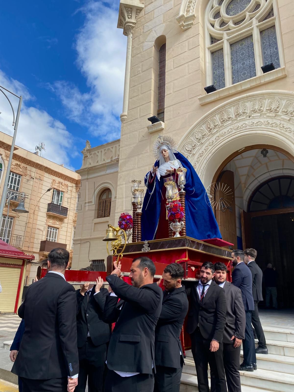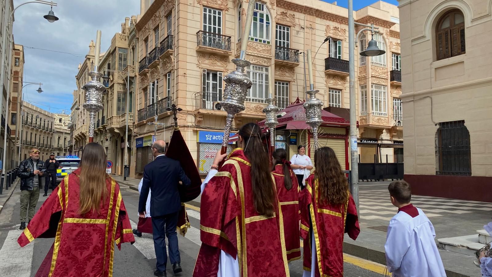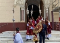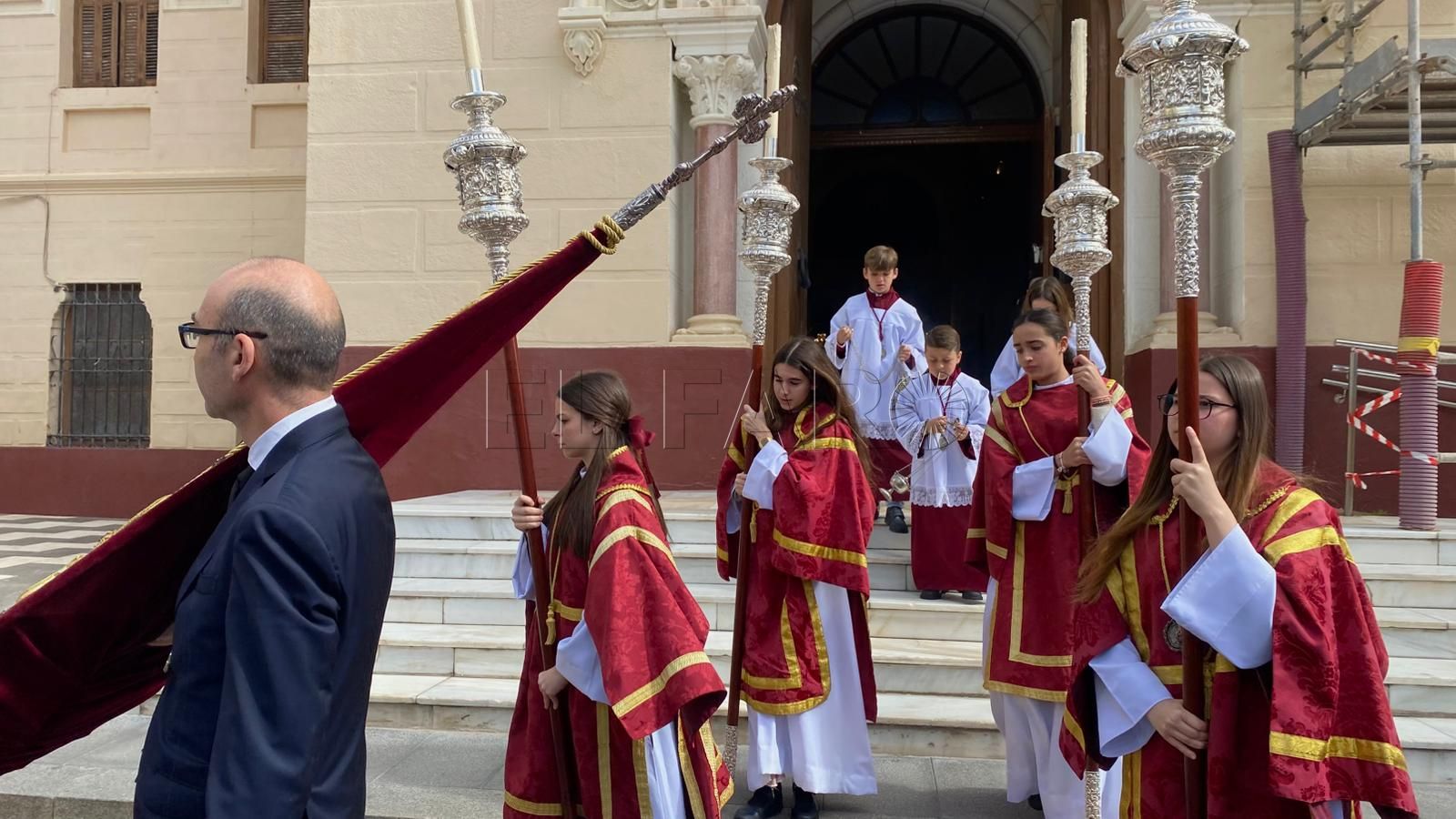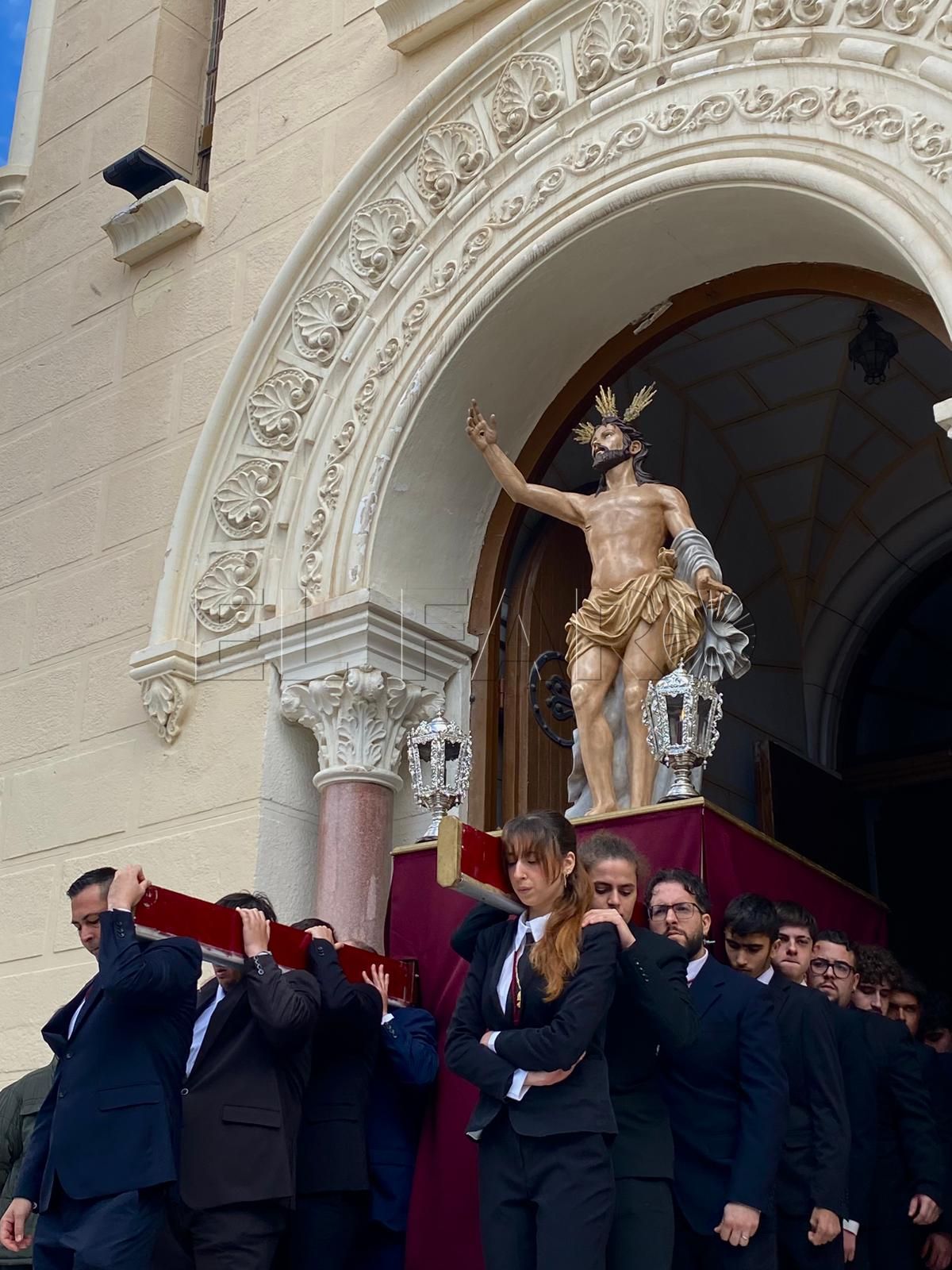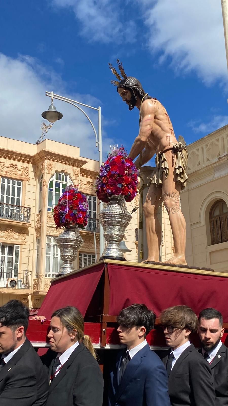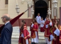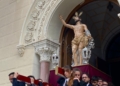 La iglesia del Sagrado Corazón ha sido el punto de encuentro de los hermanos de la Cofradía de la Flagelación con motivo del traslado de sus titulares hasta la Casa Hermandad, situada en el barrio ‘Batería Jota’.