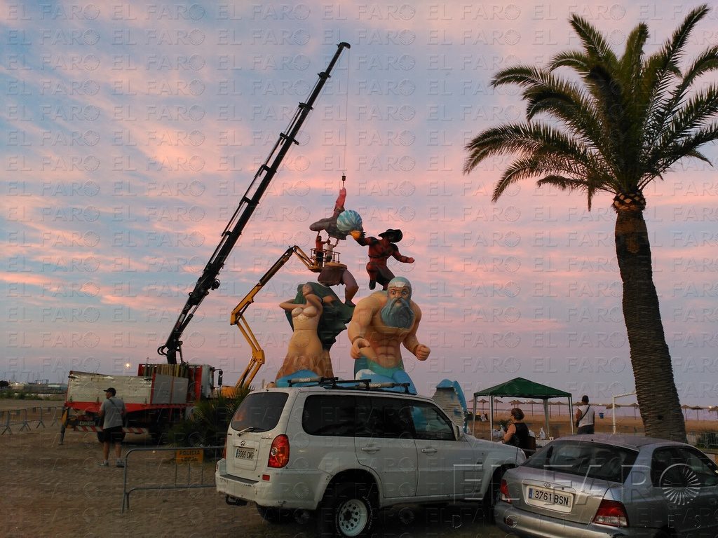 Martínez explicó que los melillenses podrán ver a Neptuno, dios de los mares, que posa firme mientras las olas se mueven su alrededor. También está Hera, la diosa de la tierra que se alza sobre una montaña, “saliendo de ella y provocando el movimiento de las fallas”. Sobre ambos personajes, se ha instalado al dios del viento, Eolo, y al dios del fuego, Hermes.