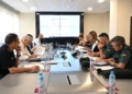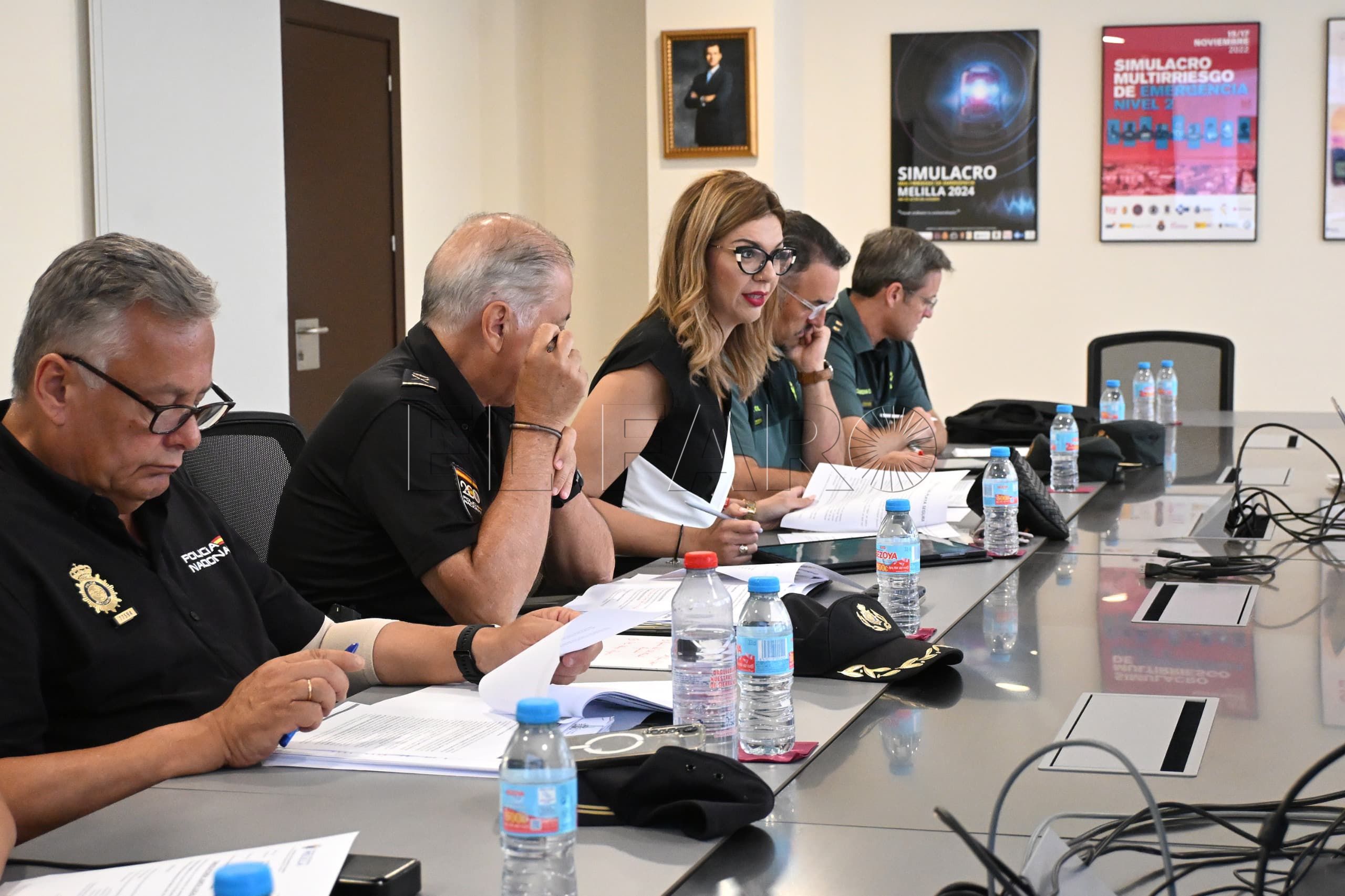 A la reunión han asistido la delegada del Gobierno en Melilla, Sabrina Moh, y el consejero de Seguridad Ciudadana, José Ronda, así como mandos y representantes de la Guardia Civil, Policía Nacional y Policía Local.