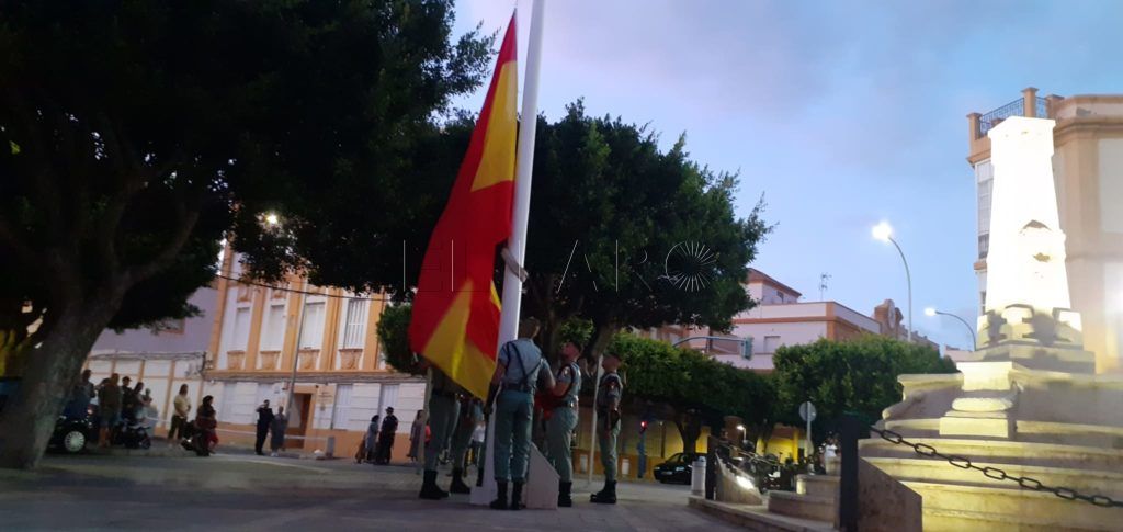 La ceremonia castrense tuvo lugar alrededor de las 20:15 horas de la tarde con la Unidad de Honores, al mando de un oficial y compuesta por Escuadra de Gastadores, una Sección y la Banda de Guerra del Tercio Gran Capitán 1º de La Legión que se encargó del acto del arriado de bandera. La Unidad de Música de la COMGEMEL interpretaba el himno nacional de España.