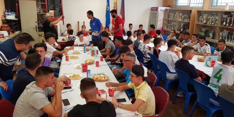Así, cerca de un centenar de chavales acudieron a este acto, que se desarrolló en la sede de la entidad azulgrana, pertenecientes a seis equipos: Infantil A, Cadete A, Cadete B, Juvenil A, Juvenil B y División de Honor Juvenil de Fútbol Sala.