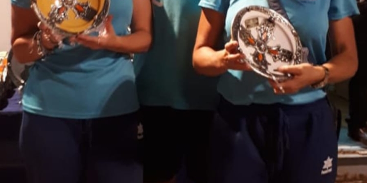Las campeonas absolutas en categoría directa femenina fuero Isabel Martínez y Bea Ruiz del Club Petanca Peñón de Vélez, segundas clasificadas Ana Asensio y Rosa Pino del Club Petanca Melilla y terceras clasificadas Pepi Bejerano y María del Mar Roldán del Club Petanca Melilla.