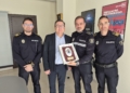 Tras el intercambio de obsequios, la plantilla y el cuerpo técnico realizaron un recorrido por las instalaciones de la Jefatura de Policía Local. Durante la visita pudieron conocer distintas dependencias municipales, entre ellas la sala del 112 y la del 092, donde se les explicó el funcionamiento de estos servicios.