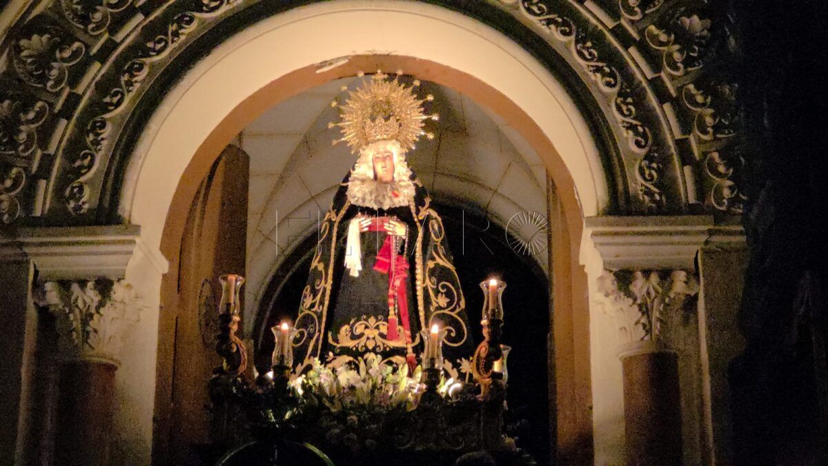 Es la Virgen que refleja en su propia mirada perdida el dolor por la muerte de su hijo, Jesús. Lo hemos visto crucificado, lo hemos visto en el regazo de la Madre y ahora la contemplamos a ella con la corona de espina en su mano, que va por la calle dejando constancia de su absoluta soledad, de su tristeza infinita, de su desconsuelo. Por eso esta procesión tiene que estar rodeada del máximo silencio posible, de la emoción y el sobrecogimiento. ¡Qué madre no empatiza con esta imagen y con el dolor que refleja!