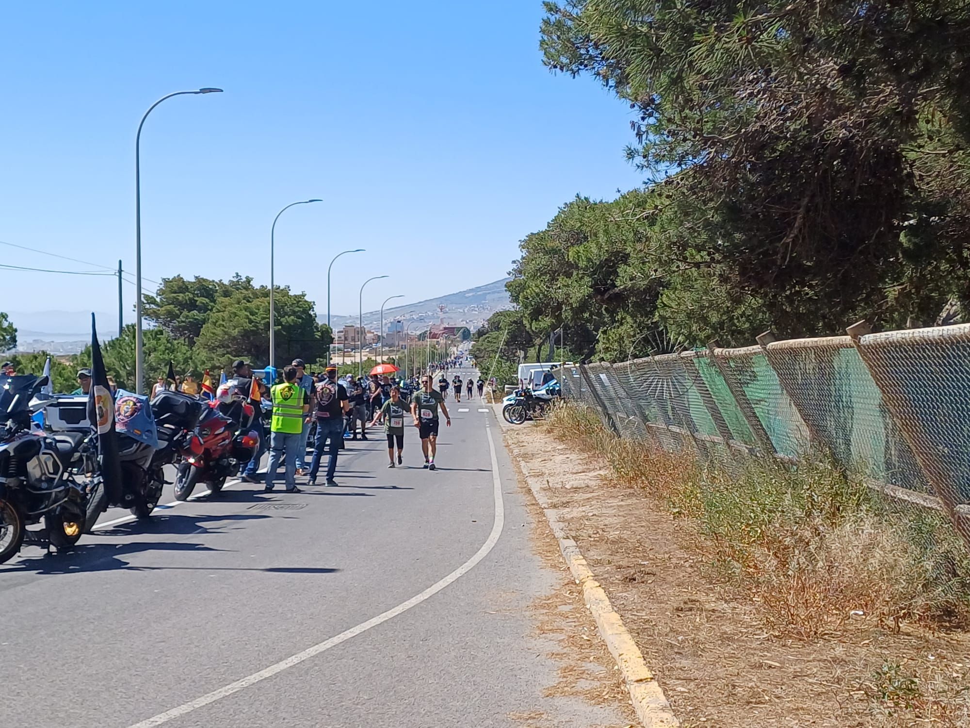 Los corredores no han podido recibir mejores ánimos que los de la Asociación de Policías Motoristas Ángeles Guardianes de Melilla, quienes recibieron a los corredores a su salida con el rugir de sus motos y les fueron dando muestras de ánimo según estos iban llegando a la meta.