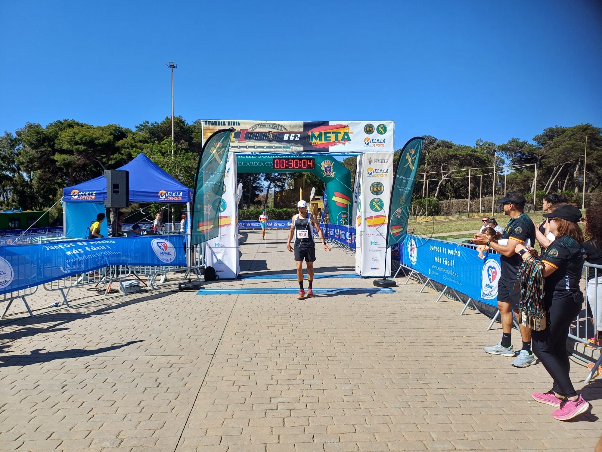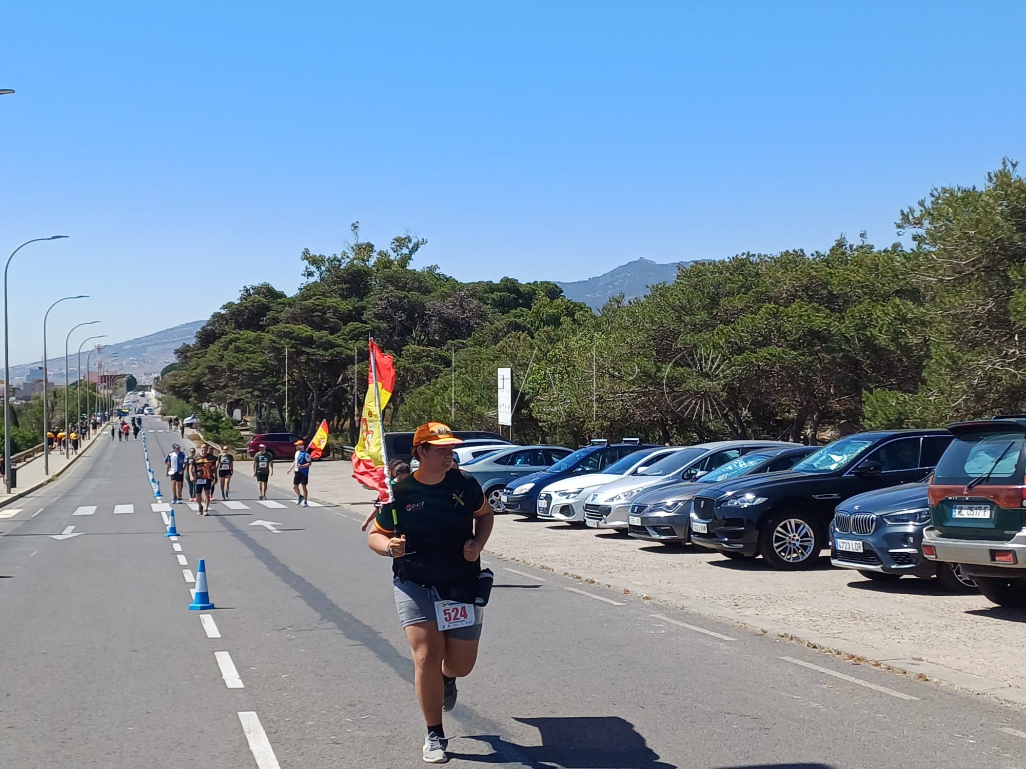 A su llegada a meta, ha sido recibido por un enorme aplauso, así como por un obsequio como reconocimiento a tal hazaña.