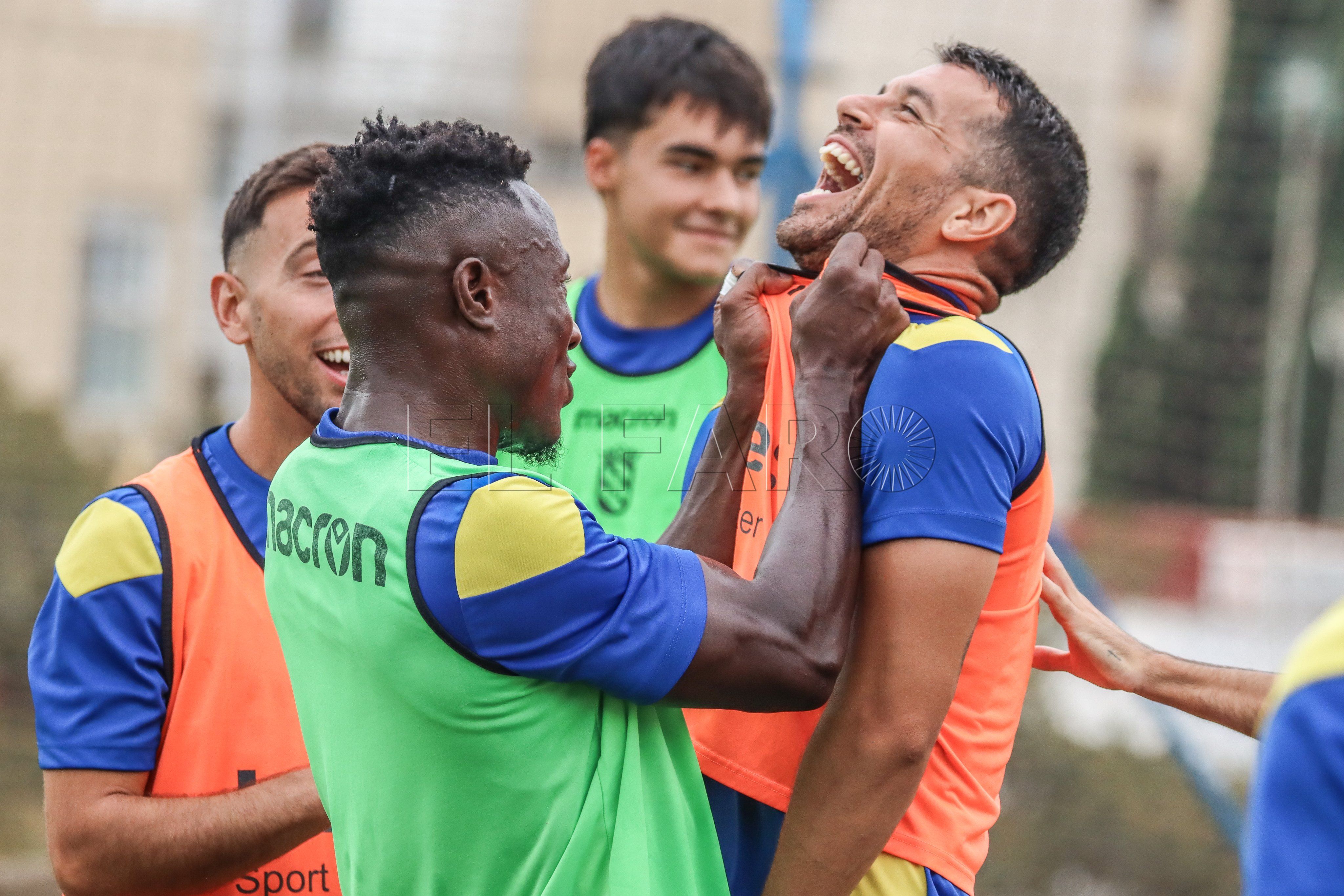 Por su parte, Javi Olmedo, guardameta azulino, no pudo ejercitarse debido a un problema en el tobillo, siguiendo un plan de recuperación individual supervisado por el cuerpo médico.