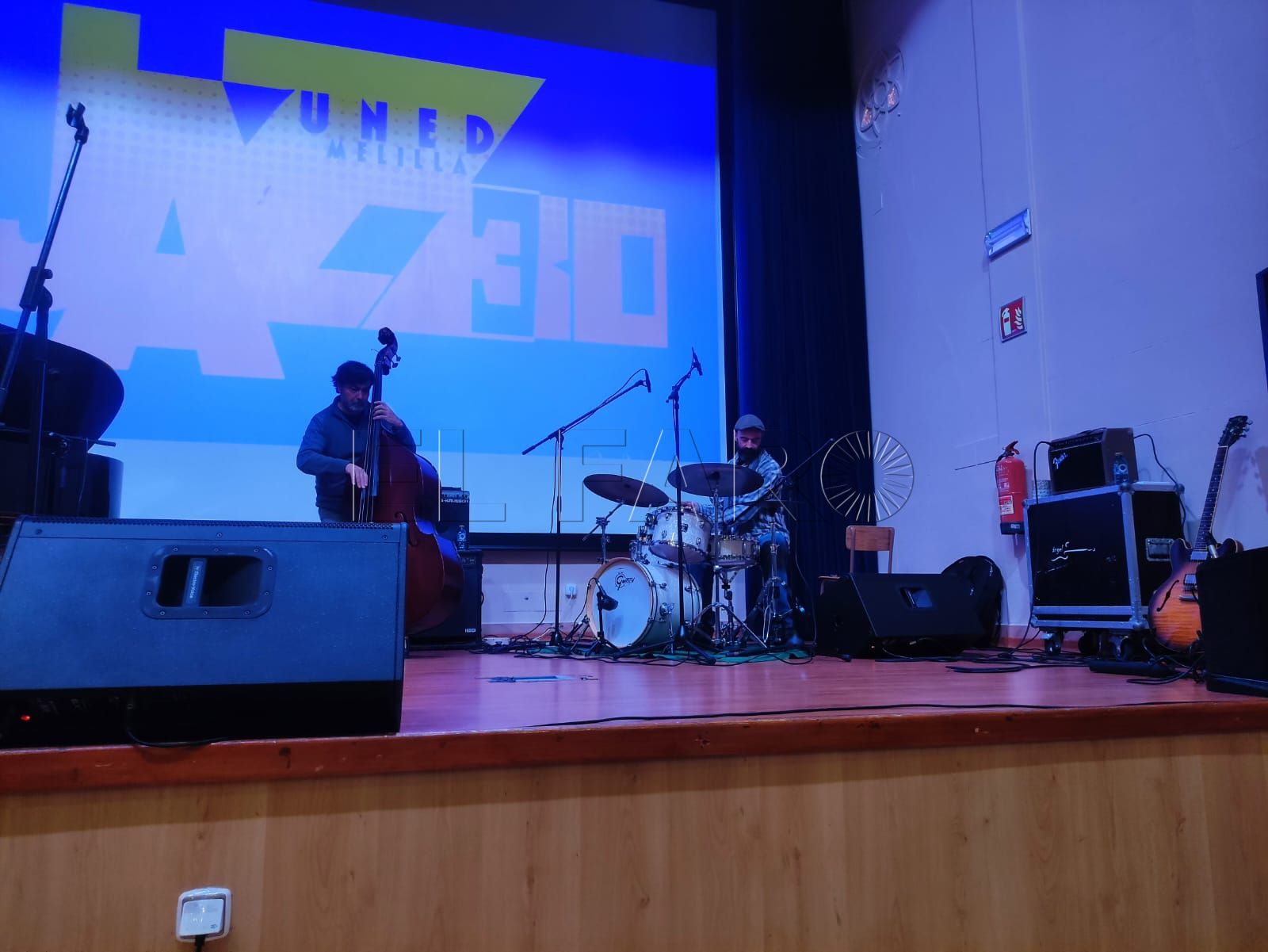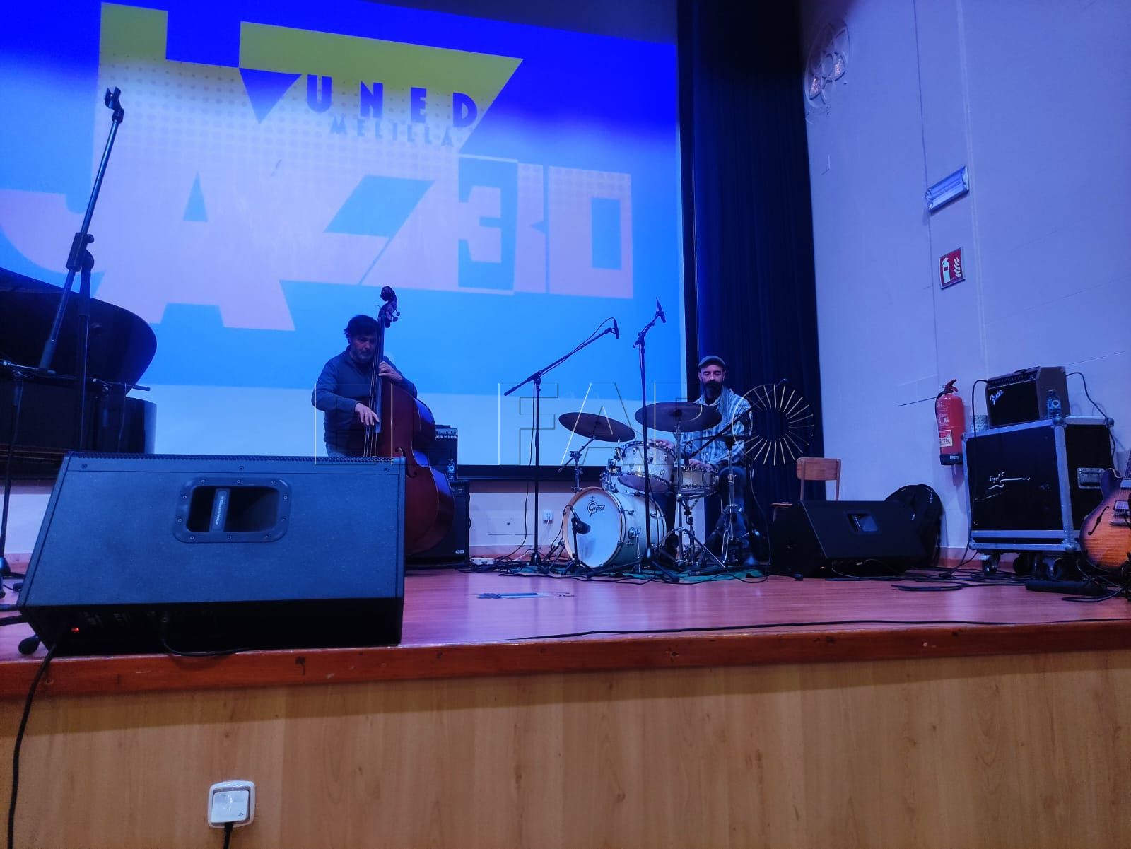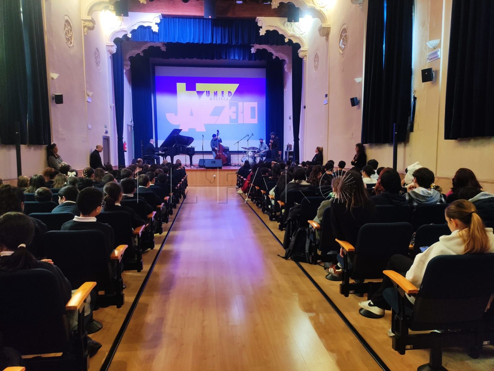Sin embargo, la jornada comenzó por la mañana en el salón de actos de la UNED Melilla con la celebración de la segunda sesión de Jazz Didáctico, a la que asistieron alumnos y alumnas del CEIP Reyes Católicos, así como estudiantes de la Escuela de Arte y del IES Leopoldo Queipo. El espacio se transformó durante unas horas en un aula sonora donde la explicación teórica se fue entrelazando con la música en directo.