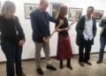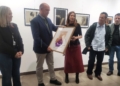 Momento en el que se entrega un pequeño obsequio de parte de la Escuela de Arte a la UNED Melilla, reconociendo la figura y el trabajo de Ángel Castro. -AGC-