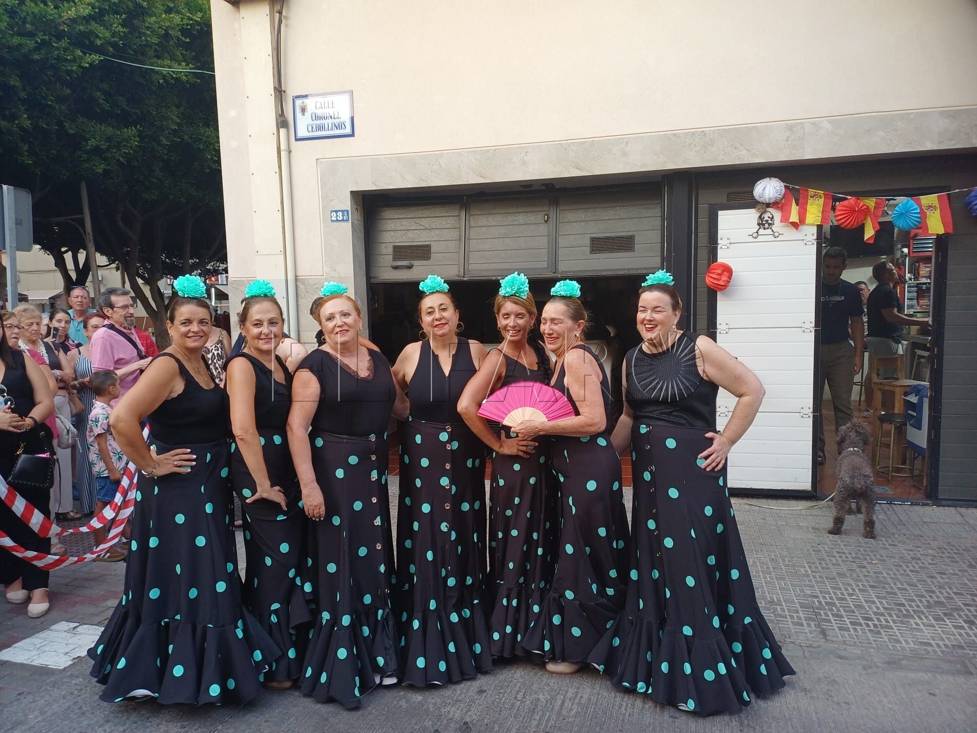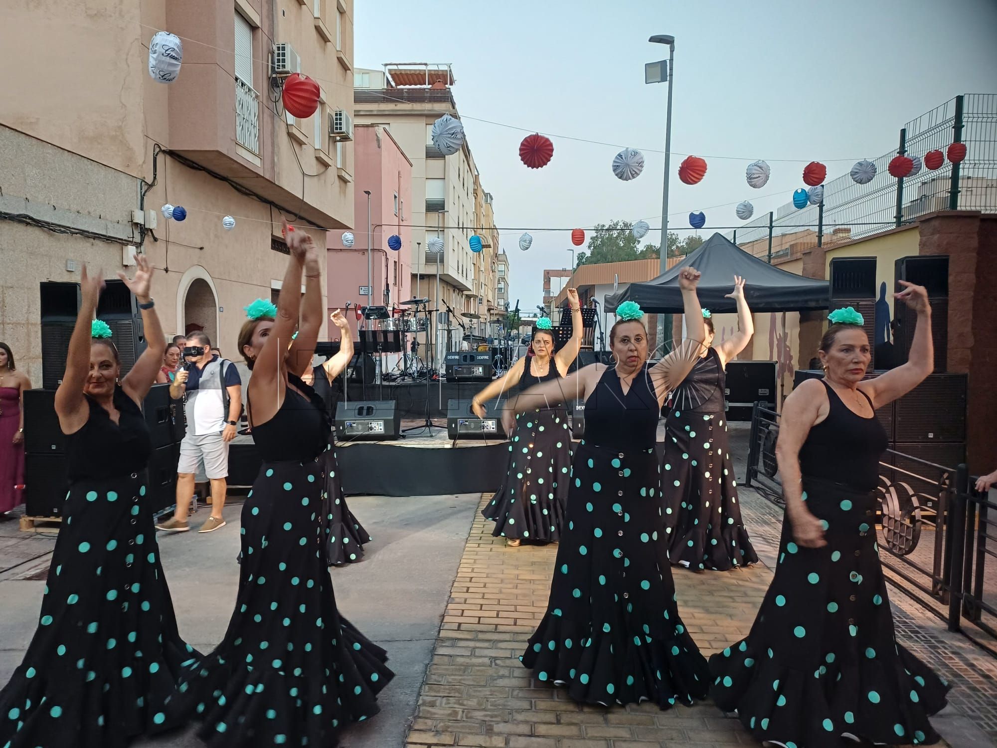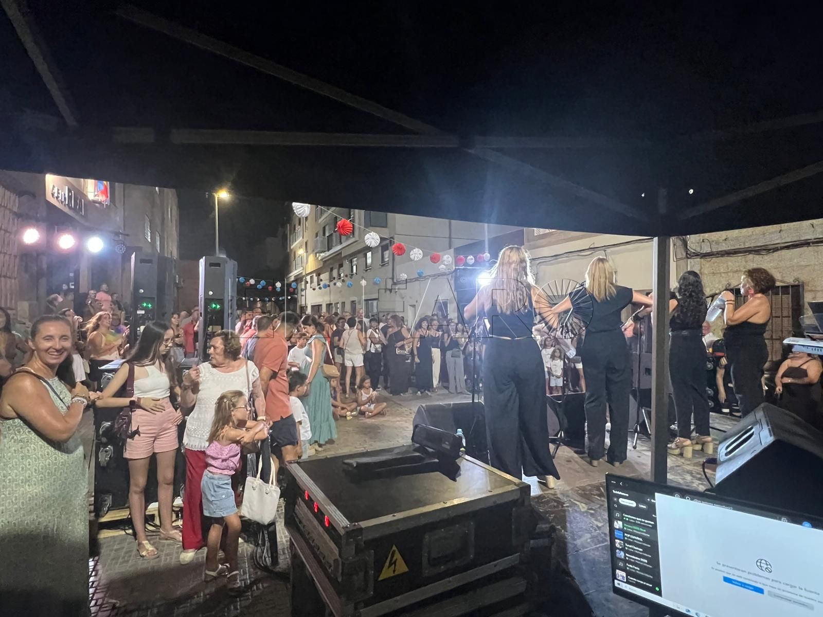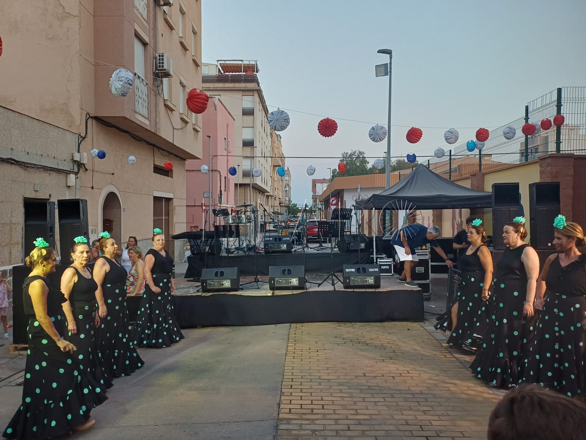 Una vez inaugurada la verbena. Los presentes han sido recibidos por una sesión musical para ambientar el encuentro. Poco antes de las 21:00 horas, le llegó el turno al grupo de baile 'Miénteme', el cual ofreció su actuación aportando ritmo y color a la noche.