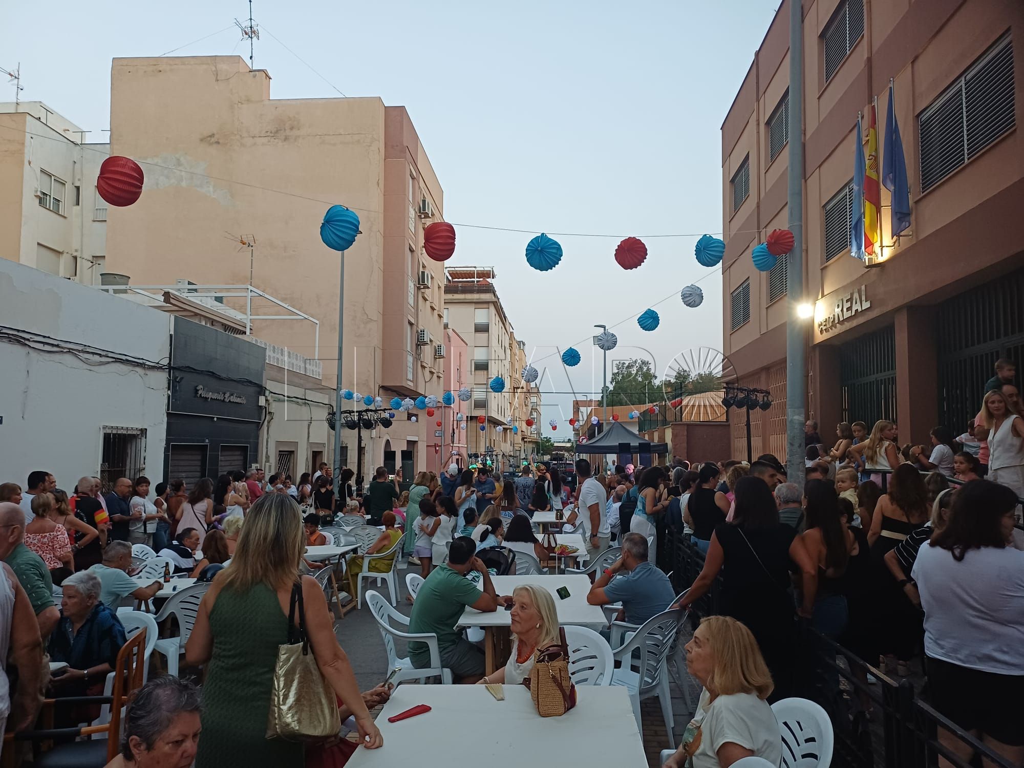 Los actos han arrancado a las 20:30 horas, con el corte de la cinta inaugural a cargo del presidente del Casino del Real, Antonio Aznar y el vicepresidente primero del Gobierno de la Ciudad Autónoma, Miguel Marín. Los vecinos ya estaban por la zona antes del comienzo de la fiesta. De hecho, muchos se adelantaron a que la cinta inaugural estuviera cortada para acceder y coger sitio en las mesas instaladas. En concreto, la asociación había previsto 20 mesas con capacidad para unas 140 personas sentadas.