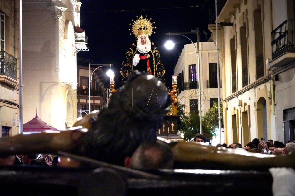 Por vez primera, el Cristo de la Paz y la Virgen de la Soledad han salido juntos en procesión. Madre e hijo han recorrido las calles de Melilla en una Procesión de Alabanzas con motivo del 75 aniversario de la erección canónica de la Venerable y Muy Piadosa Cofradía de la Soledad de Nuestra Señora y del Cristo de la Paz.