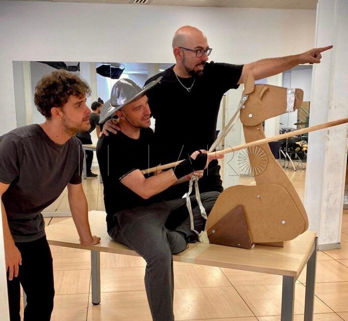 “Los elementos de escenografía se van transformando durante el espectáculo para mostrar los molinos de viento, la carreta de los cómicos… incluso tenemos un Rocinante que es como una marioneta de madera”, detalla el director.
