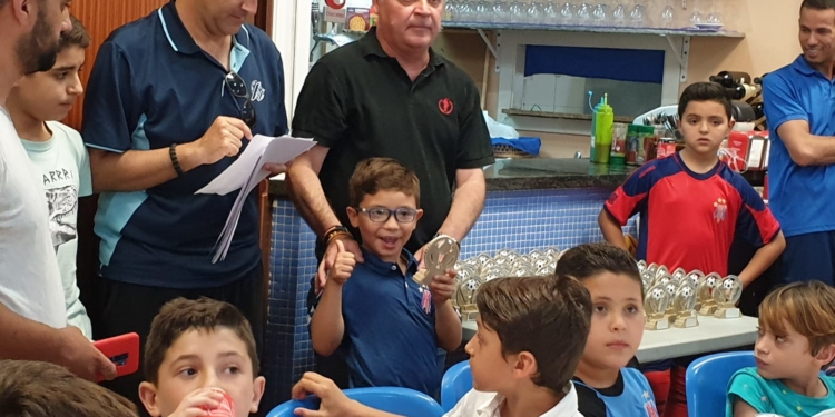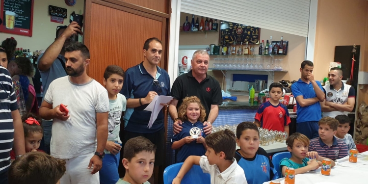 La Peña Barcelonista realizó durante estos pasados días la entrega de trofeos correspondiente a la temporada 2018-2019 para los jugadores de las categorías Prebenjamín (nacidos entre los años 2011 y 2012), Benjamín (2009-2010) y Alevín (2007-2008). Así, cerca de un centenar de chavales acudieron a este acto, que se desarrolló en la sede de la entidad azulgrana, pertenecientes a seis equipos: Prebenjamín A, Prebenjamín B, Benjamín A, Benjamín B, Alevín A y Alevín B. El presidente del club, Javier Martínez, fue el encargado de entregar, uno a uno, los trofeos a los futbolistas de la entidad, quienes también disfrutaron de una buena merienda como colofón final. Hay que destacar la buena temporada realizada por cada uno de estos conjuntos que siempre han luchado por las primeras posiciones en cada una de las categorías donde tomaron parte, viéndose un enorme nivel en mucho de los futbolistas que ya despunten con su magnífico fútbol en cada uno de los partidos que se disputaron durante esta recién terminada temporada en los campos Fernando Pernías de El Tesorillo.