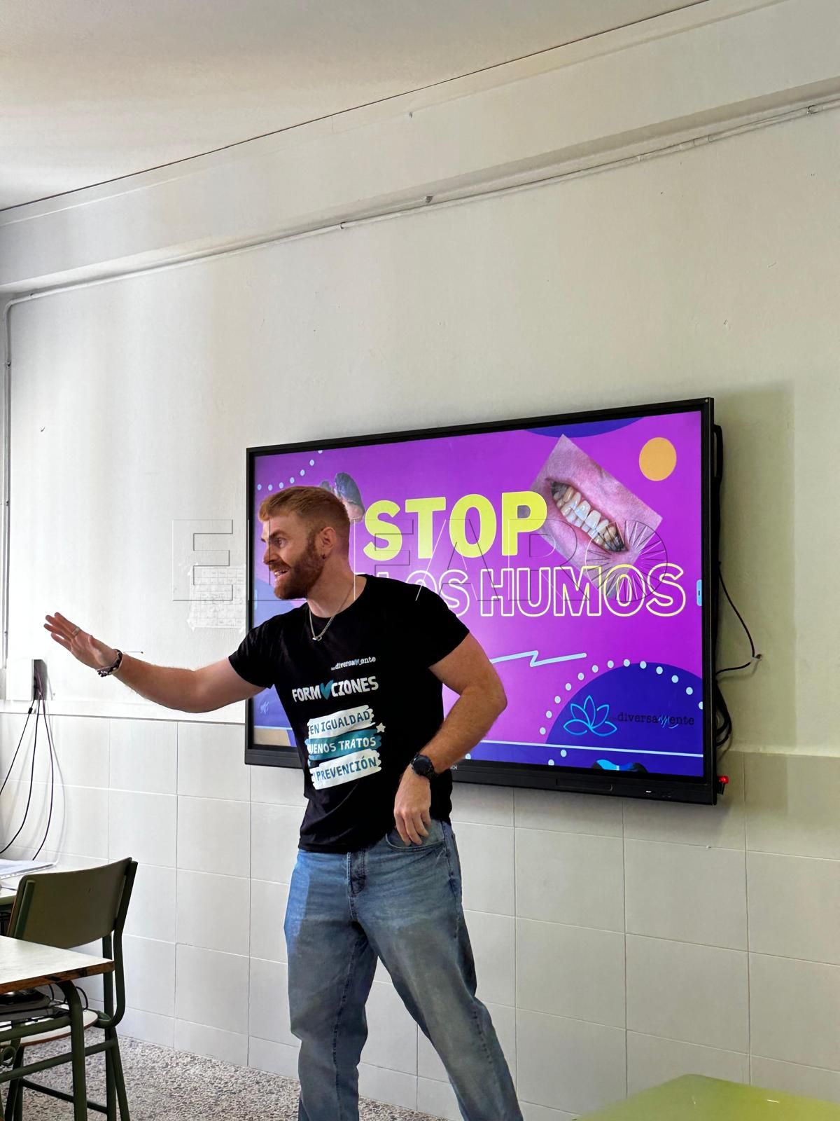 El educador y trabajador social Miguel Frías está desarrollando en los centros educativos de Melilla la iniciativa ‘Respira bien, decide mejor’, un programa dirigido al alumnado de tercero de la ESO que tiene como objetivo prevenir el consumo de tabaco, vapeadores y otros productos relacionados con la nicotina. Según explica, cada grupo recibe tres sesiones, una decisión que responde a la necesidad de trabajar el contenido de forma continuada y no como una intervención puntual.