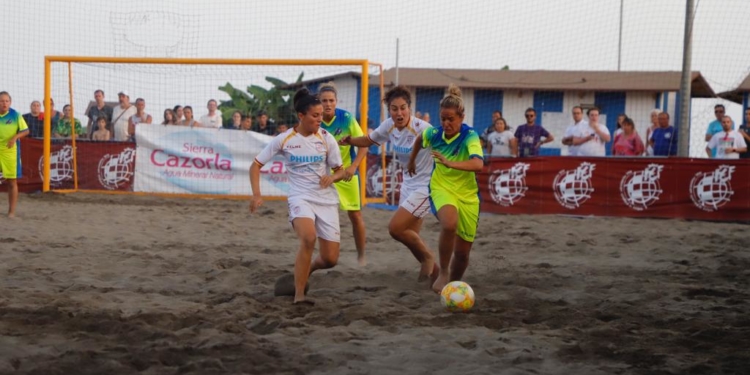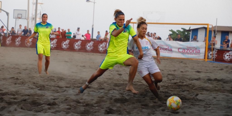El primero de los equipos en ponerse por delante en el marcador fue el murciano cuando Carmen Fresneda con la realización de una espectacular chilena, en el minuto 20, que puso de pie a todos los aficionados que se dieron cita para ver en directo este enfrenamiento para poner en el marcador el 0-1 y ante la que nada pudo hacer la portera de Melilla. La escuadra de nuestra ciudad siguió con su alto ritmo de fútbol playa pero se vieron incapaces de materializar ninguna de ellas las ocasiones que tuvieron durante los minutos que se llevaban disputados en tierras malagueñas, concretamente en la localidad de Torrox.