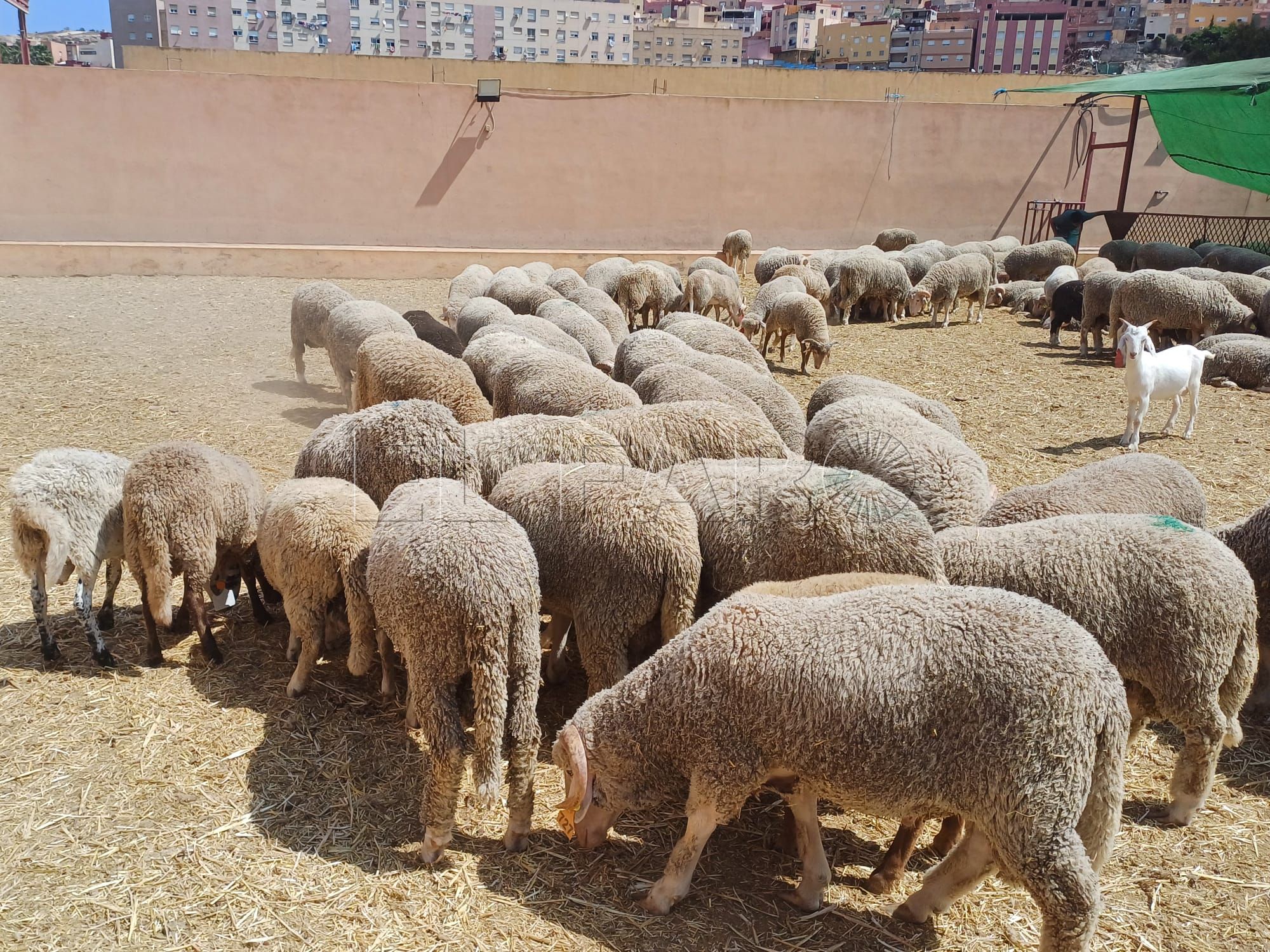 En la Ganadería Dina, situada en la carretera de Farhana, este año han traído más de mil borregos, una cifra en torno al 50 % menos de lo que llega otros años. Sin embargo, la indecisión de muchos ciudadanos ha hecho que muchos de ellos se hayan quedado sin borrego.