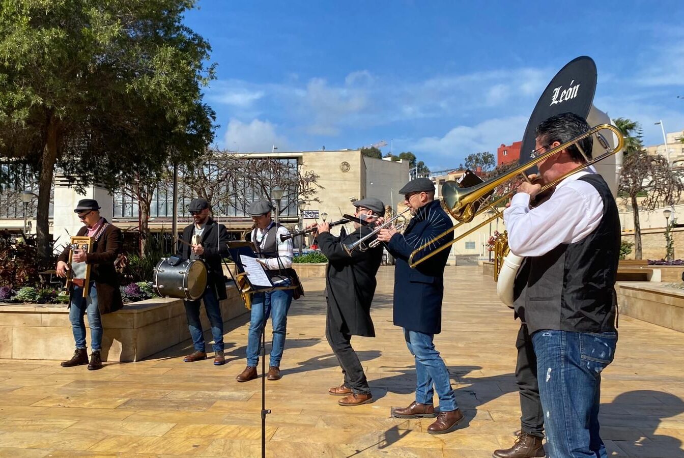 Las Jornadas sobre Jazz arrancaron el sábado 14 de febrero y, a pesar de las inclemencias meteorológicas, con una ligera adaptación, pudieron llevarse a cabo con total normalidad. El pasacalles de León Dixie Jazz Banda se trasladó al local de ‘La Catedral’, en O’Donnell, calle que será el centro del jazz urbano a lo largo de la semana gracias a la colaboración con la asociación Zona Centro. Esta banda recuerda a los ritmos tradicionales de Nueva Orleans; el domingo, sí pudo completar su pasacalles desde la Plaza de las Culturas hasta la zona de la Puerta de la Marina, junto al restaurante ‘Los Polillas’. El lunes a las 19:00, en esta propuesta de jazz urbano, Higinio Reus QTET hará su moderna interpretación del estilo musical en las calles del centro. A la misma hora del martes, Naima Mohatar le dará el relevo con una propuesta vocal que se enmarca en un repertorio de lo más actual.