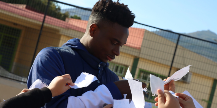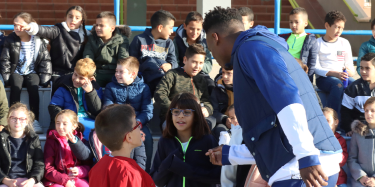 Nada más llegar, los dos jugadores fueron recibidos entre los aplausos de los chicos y chicas que estudian en este centro escolar.