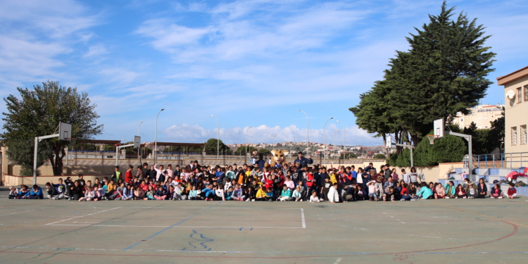 Los jugadores de la primera plantilla del Club Melilla Baloncesto, Caleb Agada y Fede Uclés, visitaron en mañana de ayer, lunes a los alumnos del CEIP Eduardo Morillas para pasar una divertida mañana de baloncesto con todos ellos.