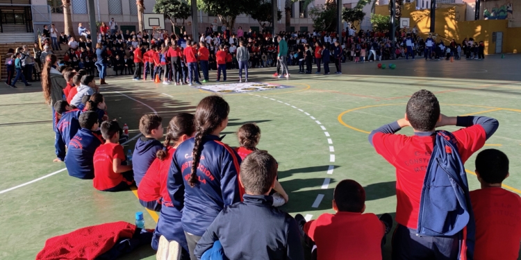 Triples del mediocampo, partidos de dos contra dos o diferentes juegos, han sido parte de la actividad que el equipo ha llevado a cabo en el CEIP Constitución y con las que han vibrado todos los presentes.