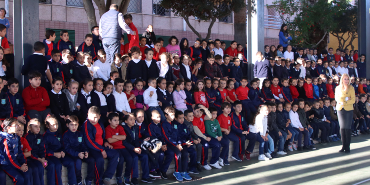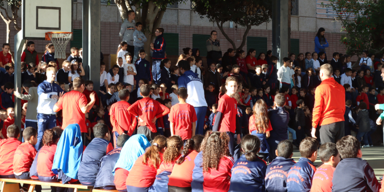 Muchos de estos alumnos que han disfrutado tanto con los juegos realizados en su centro escolar estarán presentes este viernes en las gradas del pabellón javier Imbroda para animara al Melilla Baloncesto.