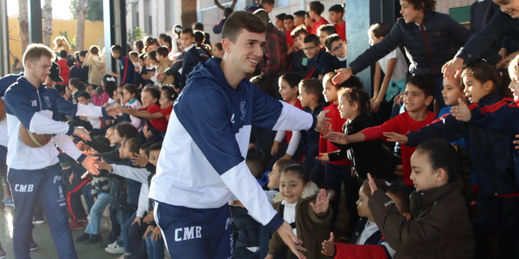Para finalizar la visita, los jugadores del primer equipo azulino han repartido entradas entre los alumnos y alumnas del CEIP Constitución de cara al partido que este viernes el equipo disputa a partir de las 20:15 horas en el pabellón Javier Imbroda Ortiz ante B the travel Brand Mallorca Palma.