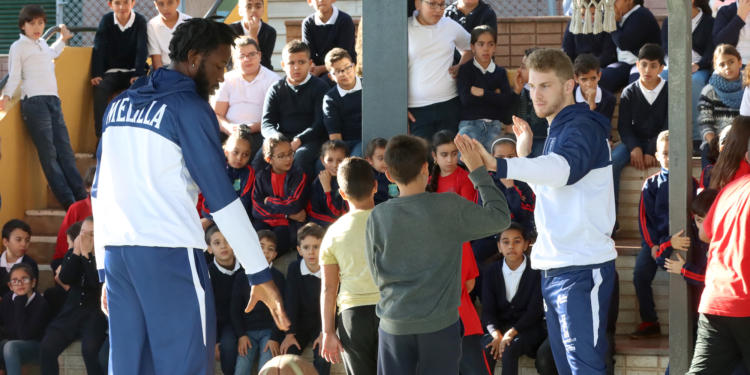 Un nutrido grupo de jugadores del Club Melilla Baloncesto formado por Matulionis, Sidibé, Luke y Ballespín visitaron en la mañana de este martes el CEIP Constitución para disfrutar de una divertida mañana repleta de baloncesto con los alumnos y alumnas del centro, que disfrutaron de lindo con esta visita pero sobre todo por trato cercano que tuvieron cada uno de los componentes de la plantilla del Melilla Baloncesto con cada uno de los alumnos de este centro de nuestra ciudad.