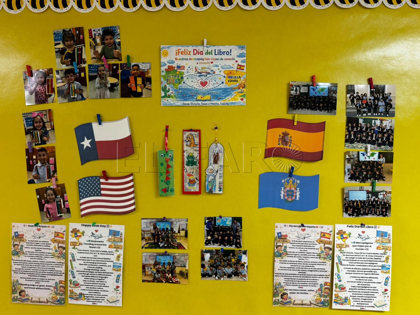El proyecto también ha tenido una plasmación visible en el centro educativo de Victoria. En el colegio ECC at F.W. Gross, el intercambio ha quedado reflejado en un mural intercultural situado fuera del aula, donde se exponen los marcapáginas elaborados por el alumnado.