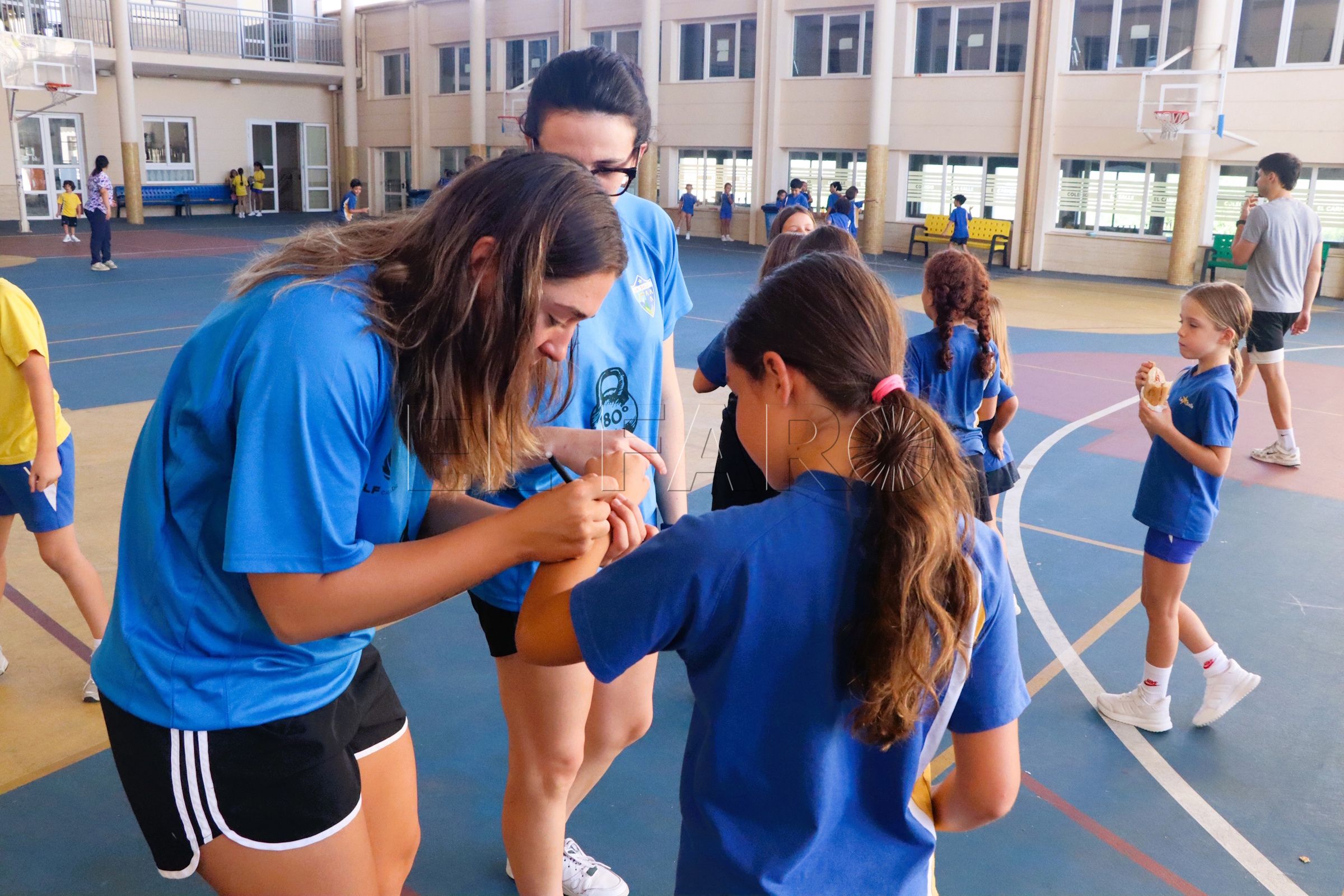 En dicha visita, no faltaron los habituales autógrafos y alguna que otra foto de grupo. Carla Torrubia fue de las más reclamadas al haberse formado como estudiante en este colegio, aunque el resto de miembros del equipo también se hincharon de estampar su firma en libretas o incluso en los brazos de los niños y niñas allí presentes. Todos y todas, felices de ver la cara de satisfacción de los pequeños al haber podido compartir el tiempo de recreo con sus ídolos.