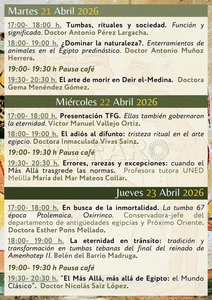 Hay algo profundamente evocador en la idea de “imaginar el más allá”. No solo por lo que implica en términos espirituales, sino por la manera en que una civilización como la egipcia convirtió esa imaginación en un sistema sólido, estructurado y sorprendentemente duradero. Bajo ese título “Imaginar el más allá. Egipto y el mundo funerario”, la UNED de Melilla propone un curso de tres días que recorre, desde distintas perspectivas, la relación de los antiguos egipcios con la muerte, la eternidad y su representación visual.
