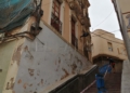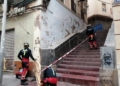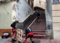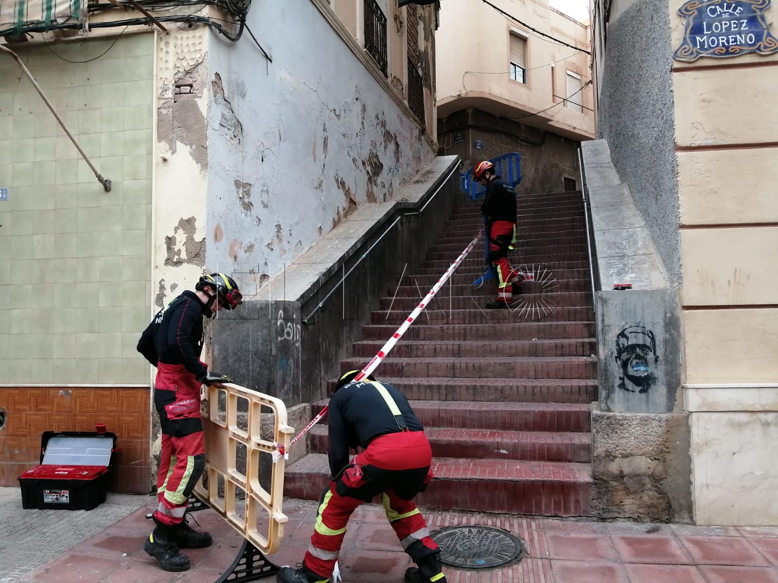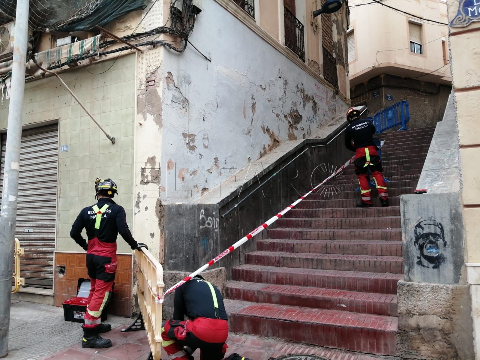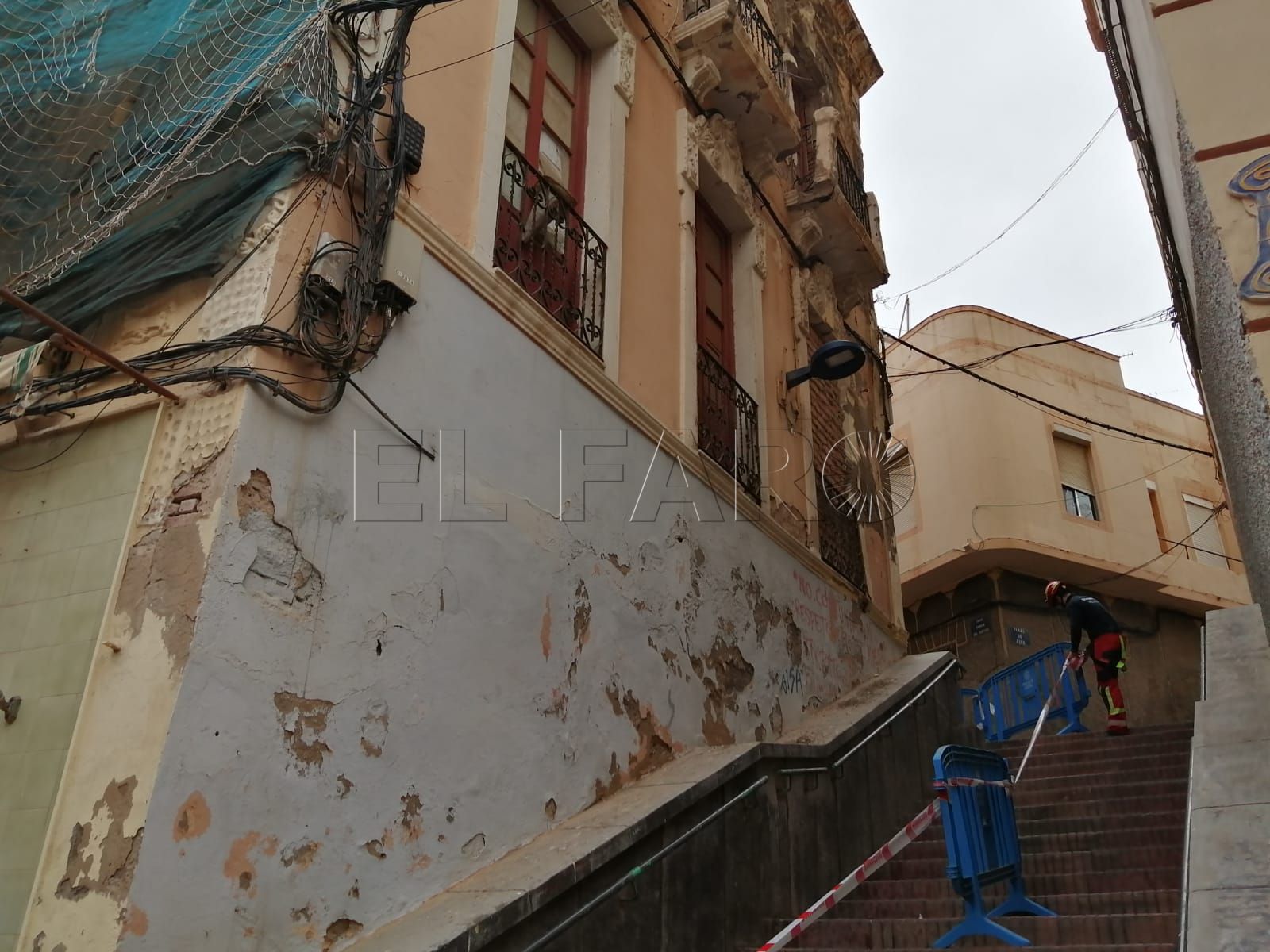 Los Bomberos han balizado este jueves las escaleras que suben desde la calle López Moreno hacia Ataque Seco para evitar una desgracia ante el peligro de desprendimiento de los balcones. Según han informado los operarios, ya después la Administración tendrá que tomar las medidas pertinentes.