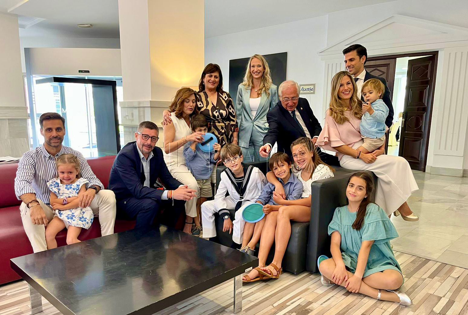 El candidato a la Presidencia de la Ciudad Autónoma de Melilla, Juan José Imbroda, aprovechó la jornada de reflexión para participar en la fiesta familiar por la Comunión de uno de los hijos de su sobrina Mabel, muy conocida en Melilla por su extraordinaria voz y ser la vocalista del grupo Dique Sur que forma con sus hermanos Jesús y Javier desde hace mucho tiempo.