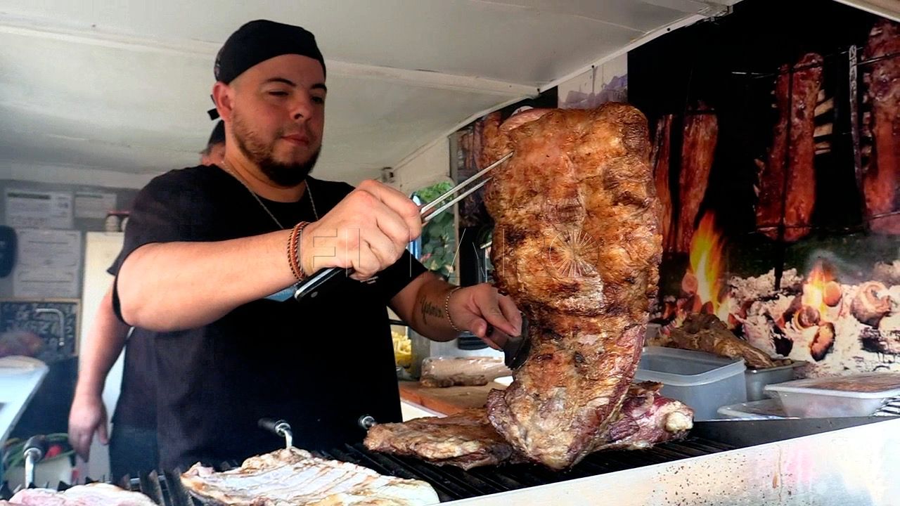 Javier, argentino afincado en España desde hace más de dos décadas, regenta un foodtruck especializado en parrilla. “Ofrecemos secreto ibérico, ración de ternera, choripán, empanadillas comunes y con chimichurri”, enumera con orgullo. Los bocadillos cuestan 10 euros y miden unos 20 cm, mientras que los platos ascienden a 15 euros, “pero son muy generosos”.