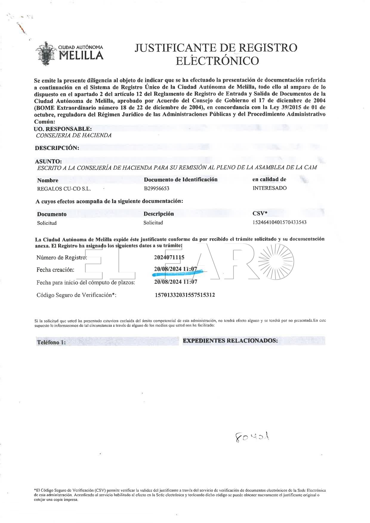 Petición formalizada en 2024