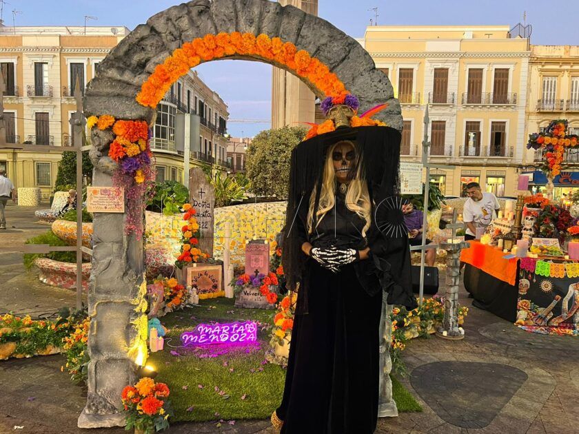 Junto al espíritu anglosajón de Halloween, la jornada incluyó también una propuesta dedicada a la tradición mexicana del Día de Muertos. En la Plaza Héroes de España se instaló un altar de las Catrinas elaborado por la artista María Mendoza, que este año presentó un diseño completamente renovado respecto a ediciones anteriores.