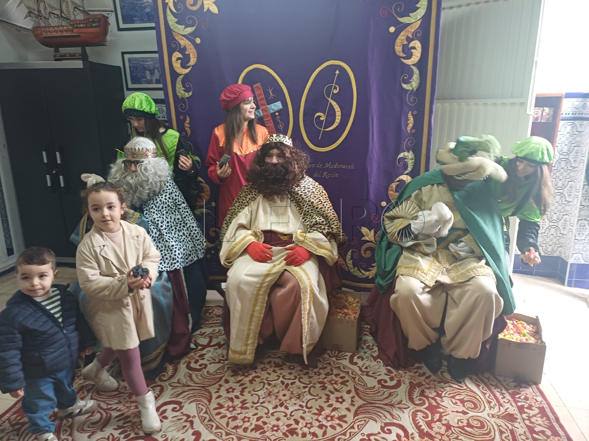 Los Reyes concluyeron su recorrido por Melilla en la Casa Hermandad de la Cofradía, donde recibieron a decenas de niños, quienes les entregaron sus cartas en mano y recibieron algún que otro juguete. Además, hicieron entrega de varios peluches donados por el colegio Enrique Soler.