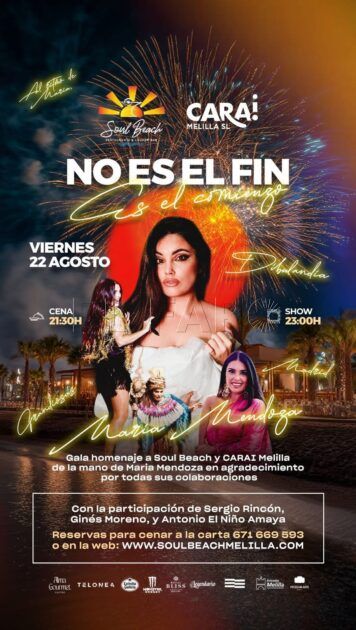 María Mendoza, cantante melillense y, según parece, el único miembro de la familia que no gestiona directamente el Soul Beach, será la encargada, el viernes, de echar el cierre musical al emblemático local de la playa de los Cárabos. Y cuando digo "familiar", no es una metáfora: estamos hablando de sus dos cuñados y su pareja. Vamos, que las reuniones de Navidad en casa de los Mendoza deben ser toda una experiencia empresarial.