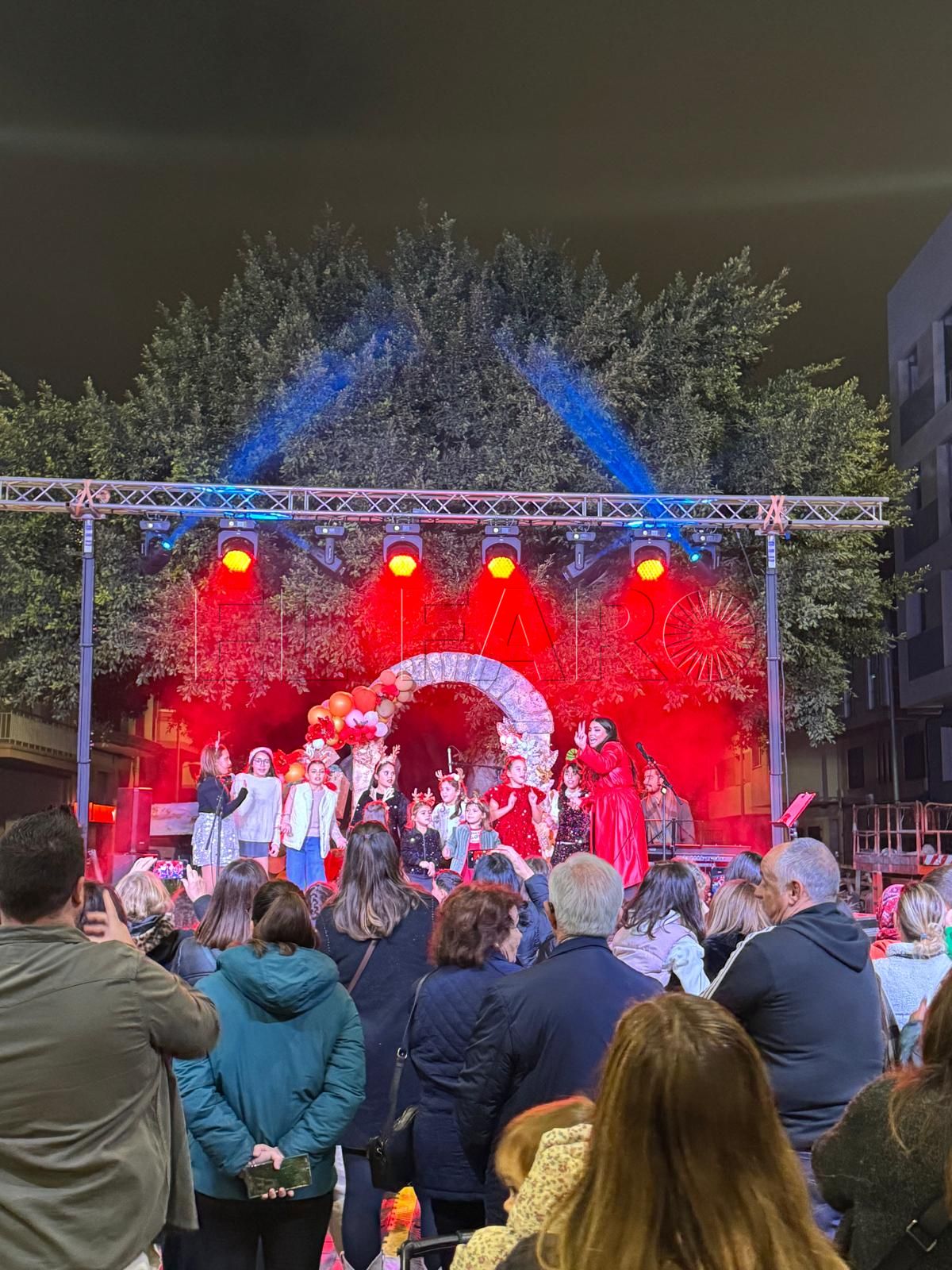 El espectáculo tuvo lugar al aire libre, en una de las principales plazas del barrio, decorada para la ocasión con motivos típicos de la Navidad