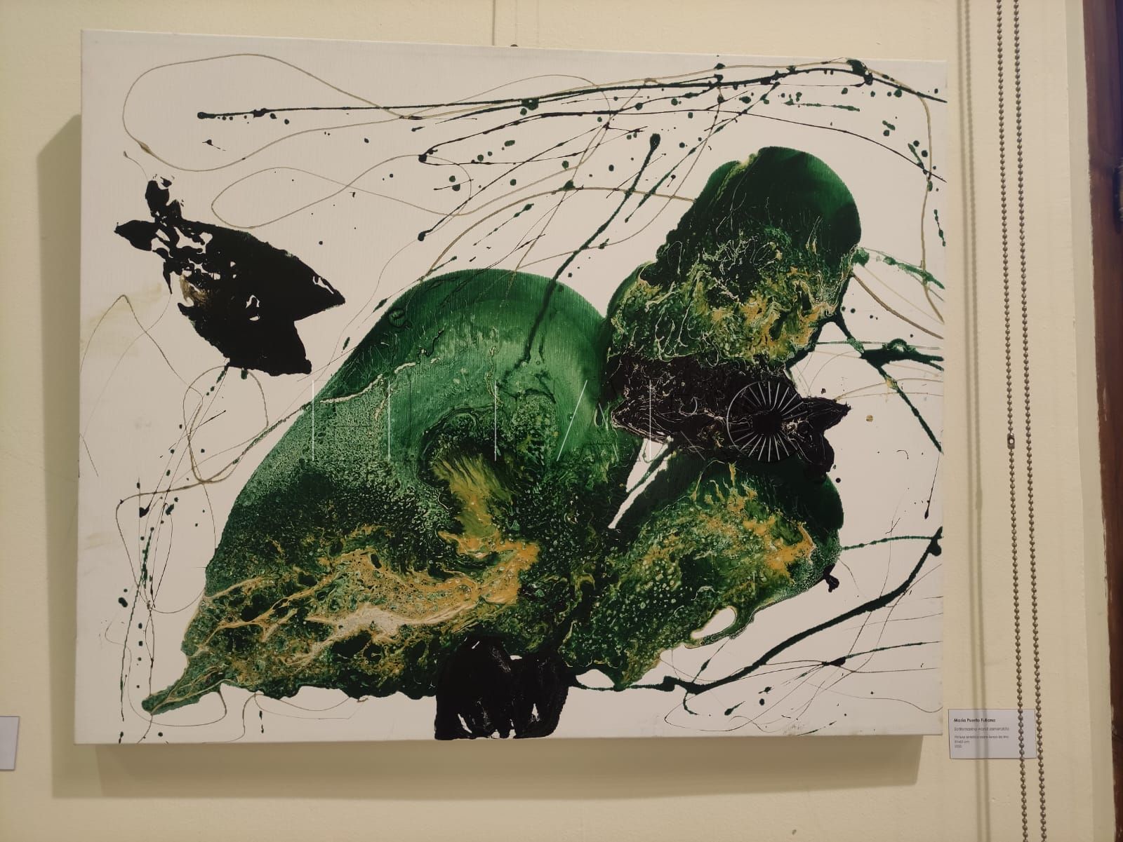 Las piezas que exhibe pertenecen a la colección limitada “Sottomarino”, integrada por 28 lienzos de temática marina realizados en estilo abstracto puro. Son obras creadas en su estudio de Mallorca mediante una técnica de pintura sintética con proyección de dolomitas, aplicada sin pincel. La artista trabaja directamente con las manos, interviniendo sobre la materia para generar texturas y profundidades que evocan el mundo submarino desde una perspectiva conceptual. La colección ya ha sido mostrada en diferentes países y forma parte de una producción artística exclusiva, certificada y limitada.