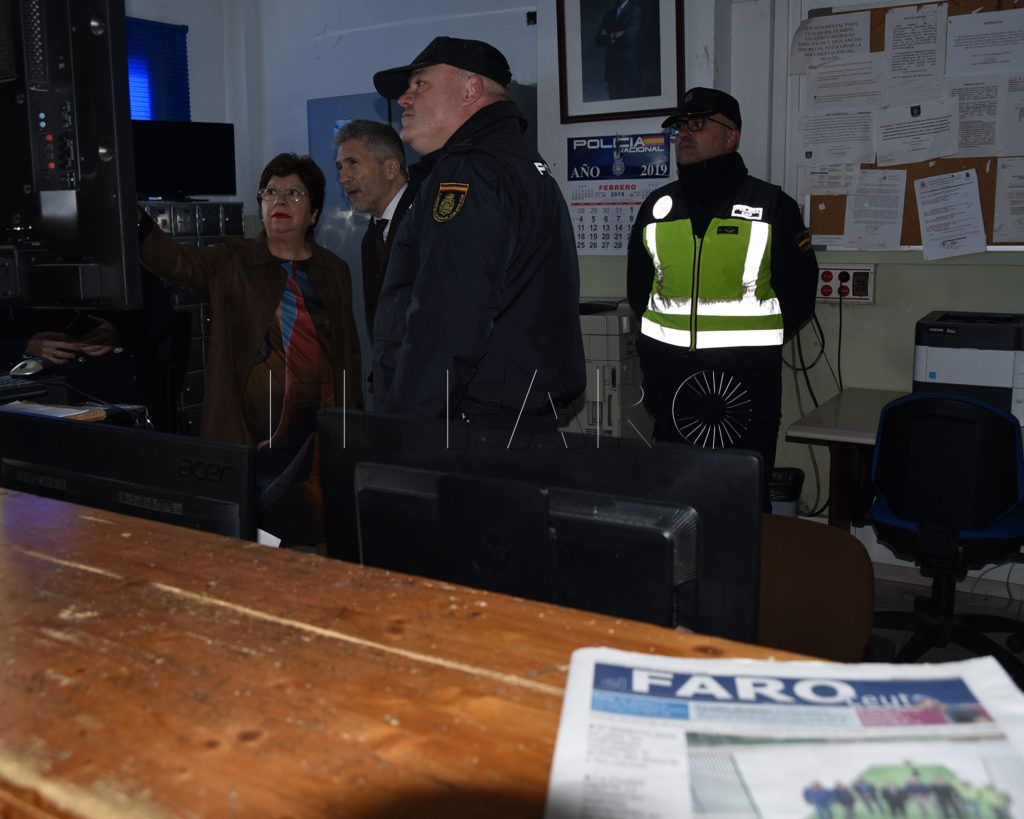 El ministro del Interior, Fernando Grande-Marlaska, visitó ayer la ciudad hermana de Ceuta, donde hizo un recorrido por el perímetro fronterizo y visitó el puesto fronterizo de El Tarajal.