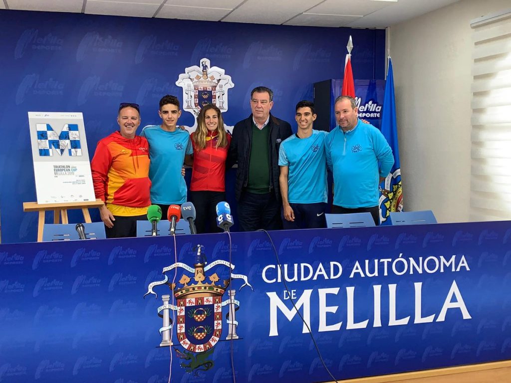 La sala de prensa del pabellón Javier Imbroda en Melilla albergó la rueda de prensa oficial de los deportistas participantes en la Copa de Europa de Triatlón que tendrá lugar el domingo 7 de abril. Participaron la Campeona Iberoamericana de Triatlón 2019, Cecilia Santamaría, y los triatletas melillenses Álvaro Martínez y Juanjo Montoro. El consejero de Juventud, Educación y Deportes de Melilla, Antonio Miranda, acompañó a los deportistas para desearles suerte en la cita continental.